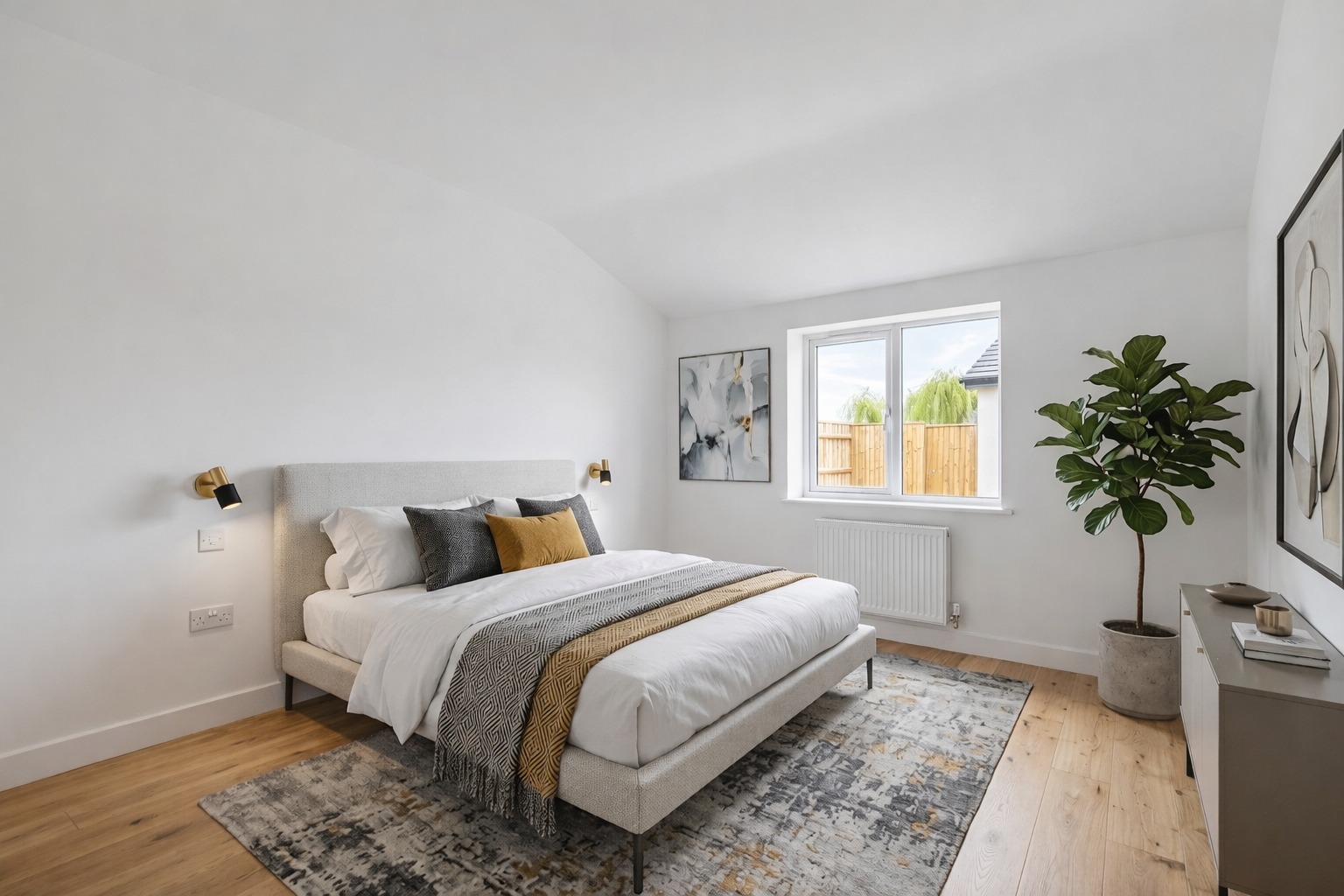 The kitchen-diner is undoubtedly the heart of this home and a key point of difference for Plot 5. As the largest plot within the development, this space offers excellent room for both cooking and dining, making it ideal for entertaining or everyday living. An additional window further enhances the room, allowing natural light to flood in and creating a bright, airy environment throughout the day. Buyers also have the opportunity to personalise the space with a choice of contemporary cabinetry and worktops, complemented by integrated appliances including a fridge-freezer, oven, hob, and dishwasher.