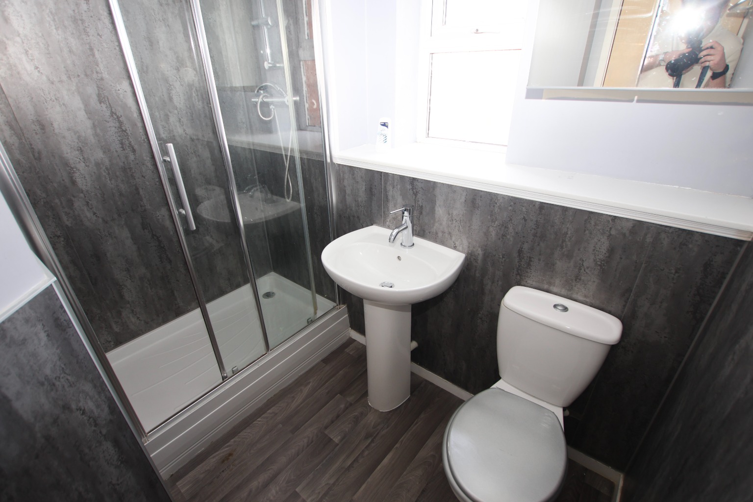 Bedroom One is a spacious double bedroom measuring approximately 3.57m x 3.05m (11'8" x 9'11") and benefits from built-in storage. The en suite measures approximately 1.23m x 2.26m (4'0" x 7'4") and features tiled surrounds, laminate flooring, WC, wash hand basin and a freestanding shower.