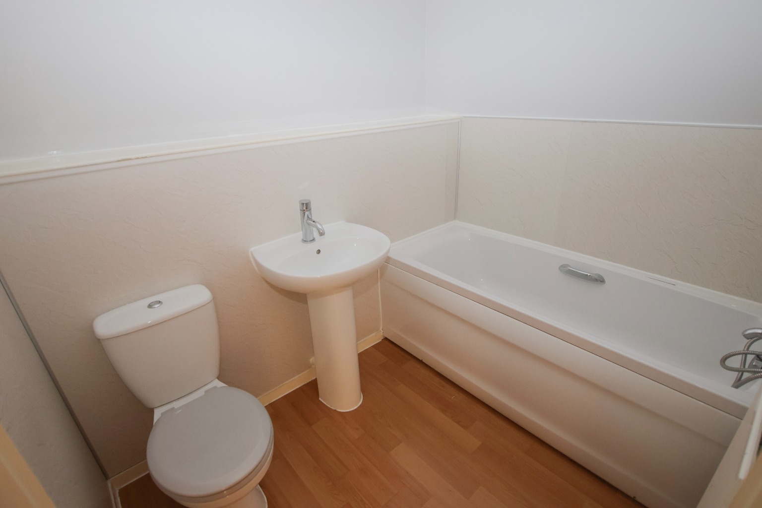 The main bathroom measures approximately 1.68m x 2.15m (5'6" x 7'0") and comprises a bath with shower over, wash hand basin and WC, all presented in a good size layout.