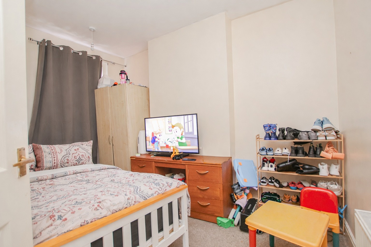 To the first floor, the bathroom measures approximately 3.8m x 1.9m and is fitted with a bath with shower over, wash hand basin with storage, WC and lino flooring. There is also a frosted window to the side elevation allowing for natural light whilst maintaining privacy. Bedroom one is positioned to the front of the property and measures approximately 2.7m x 3.3m. This room benefits from carpeted flooring, a window to the front elevation and built-in storage. Bedroom two overlooks the rear garden and measures approximately 3.3m x 2.7m. The room features carpeted flooring, a radiator and a rear-facing window.