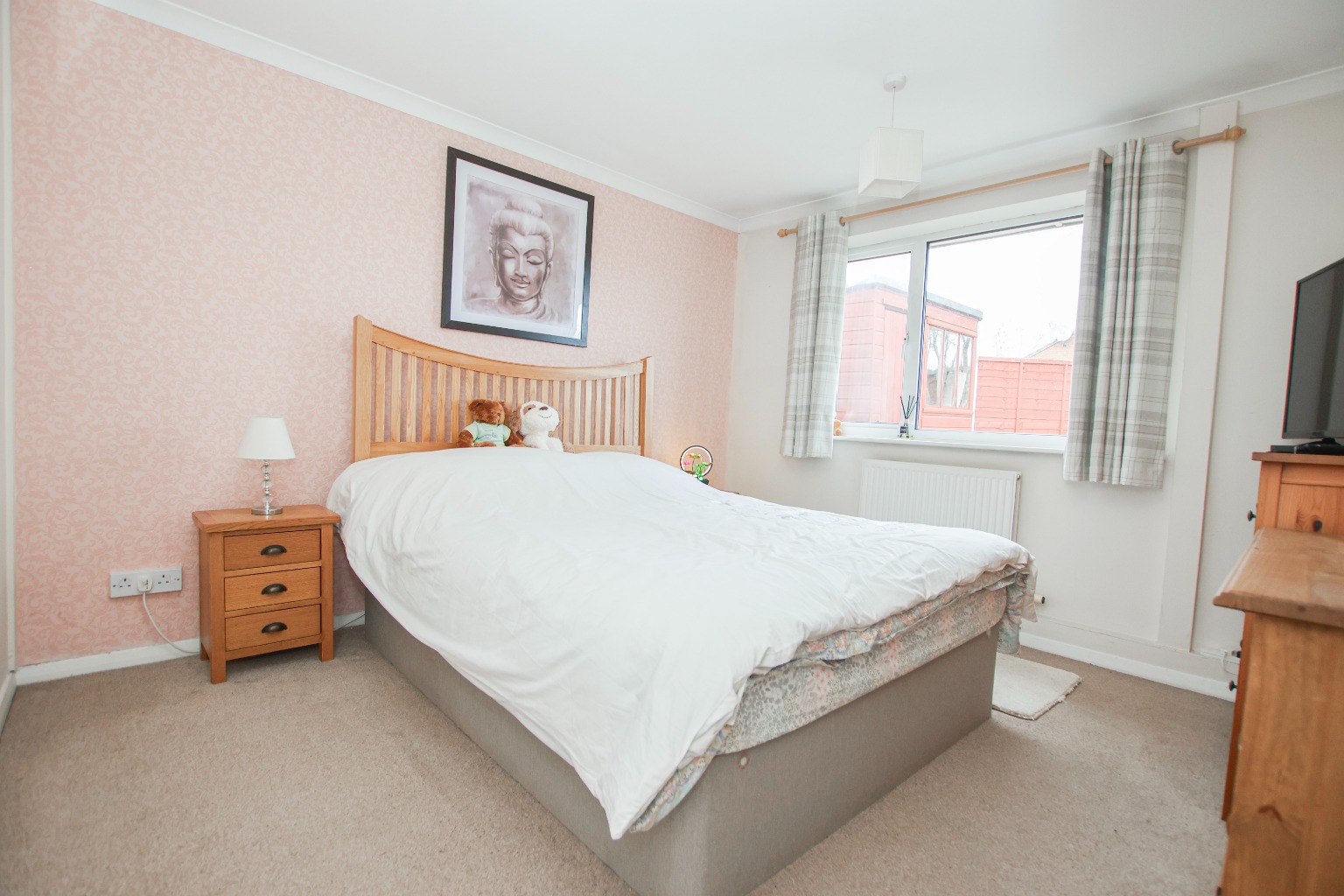 The main bedroom is a generous double room positioned to the rear, overlooking the garden and benefiting from a peaceful outlook.