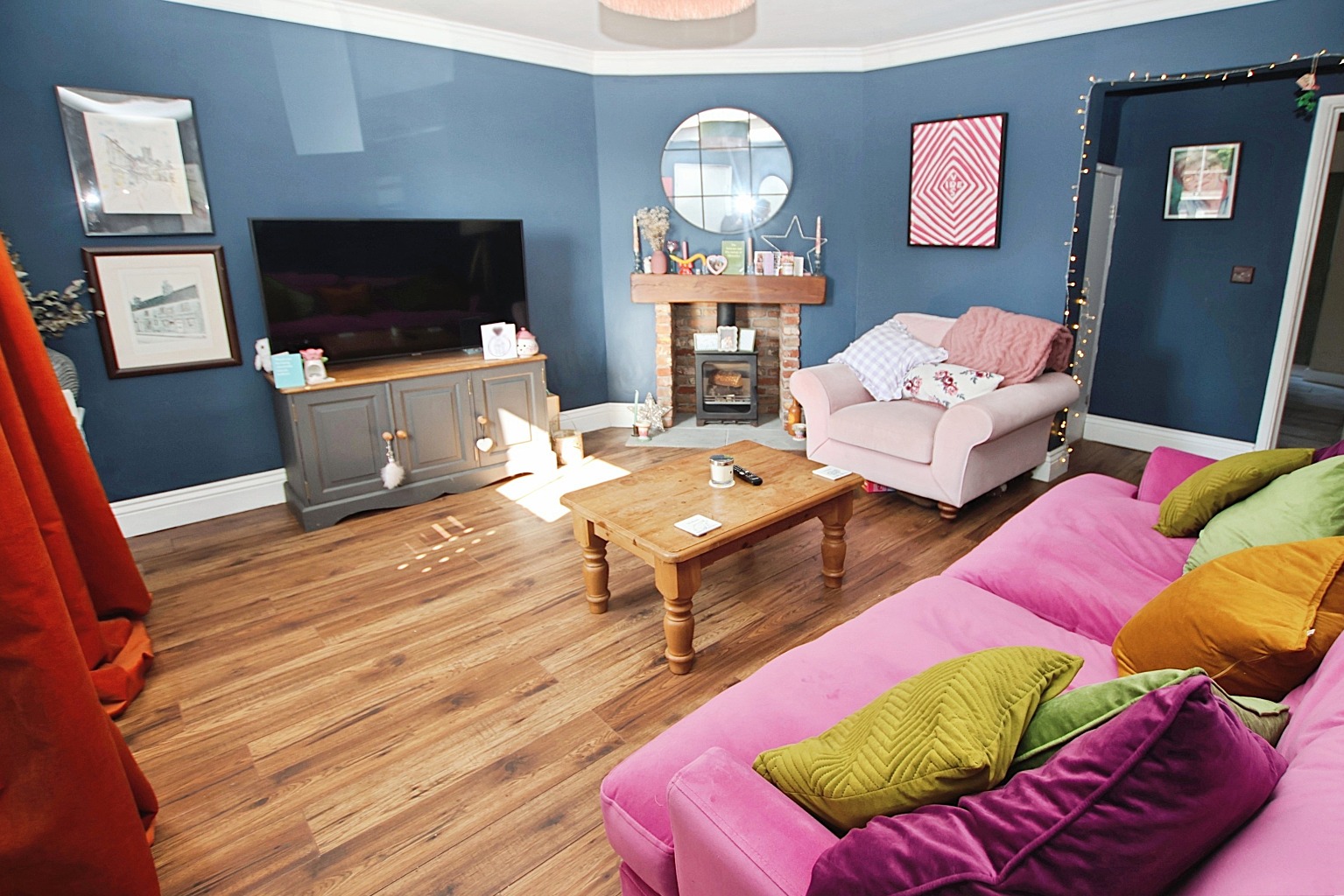 Upon entering the property, you are welcomed into a beautifully presented lounge positioned to the front of the home, creating a cosy yet spacious area to relax. Finished with attractive flooring, modern feature décor, log burner, shutters and plenty of natural light, this room offers a fantastic place to unwind at the end of the day.