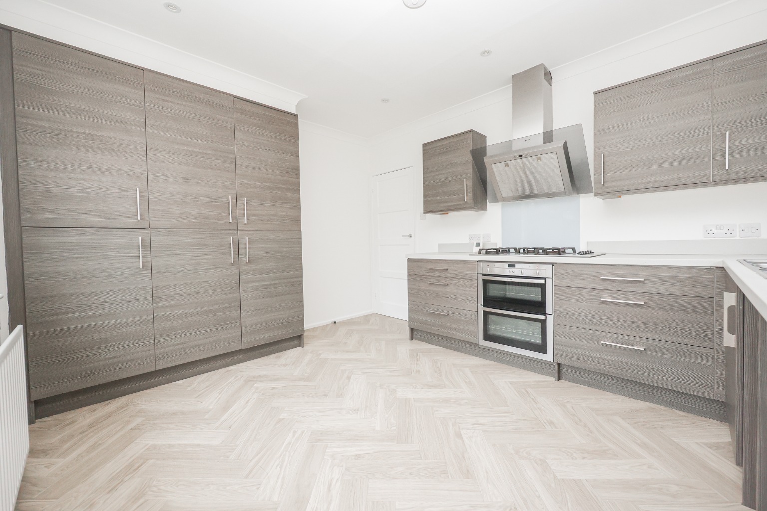 Stairs rise to the first floor, where bedroom three (3.66m x 3.07m / 12’0” x 10’1”) provides a private and versatile double bedroom suite. This room benefits from built-in storage, a side window, radiator, and access to its own en-suite shower room.The en-suite is fitted with a shower cubicle, WC, wash basin with vanity unit, heated towel rail, and extractor fan.