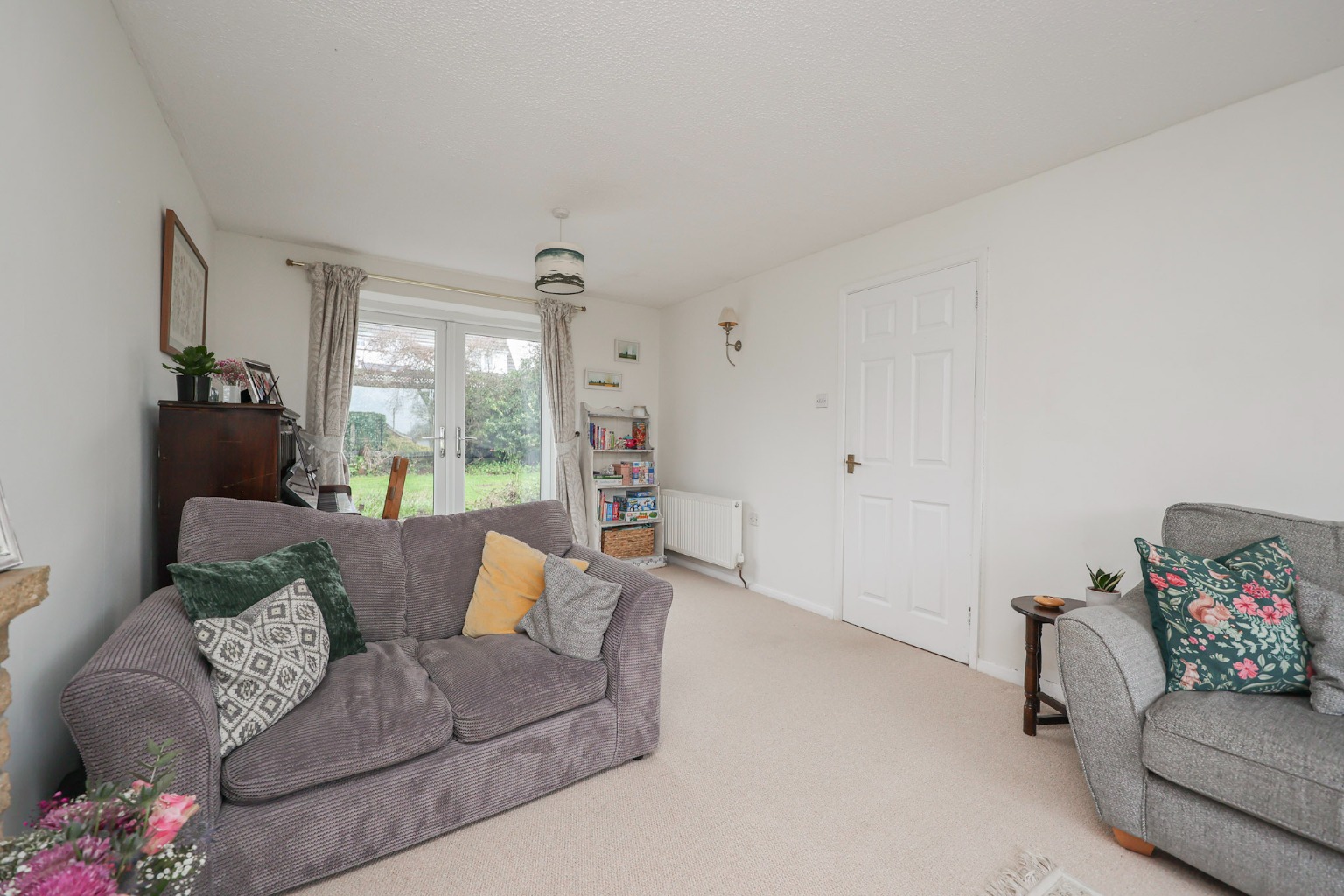 The lounge is a spacious and inviting reception room, featuring two radiators, a large front-facing window, French doors opening onto the rear patio, and a feature fireplace. The gas supply is currently capped, though a real chimney remains in place, offering potential for reinstatement if desired. This is a superb space for relaxing or entertaining.