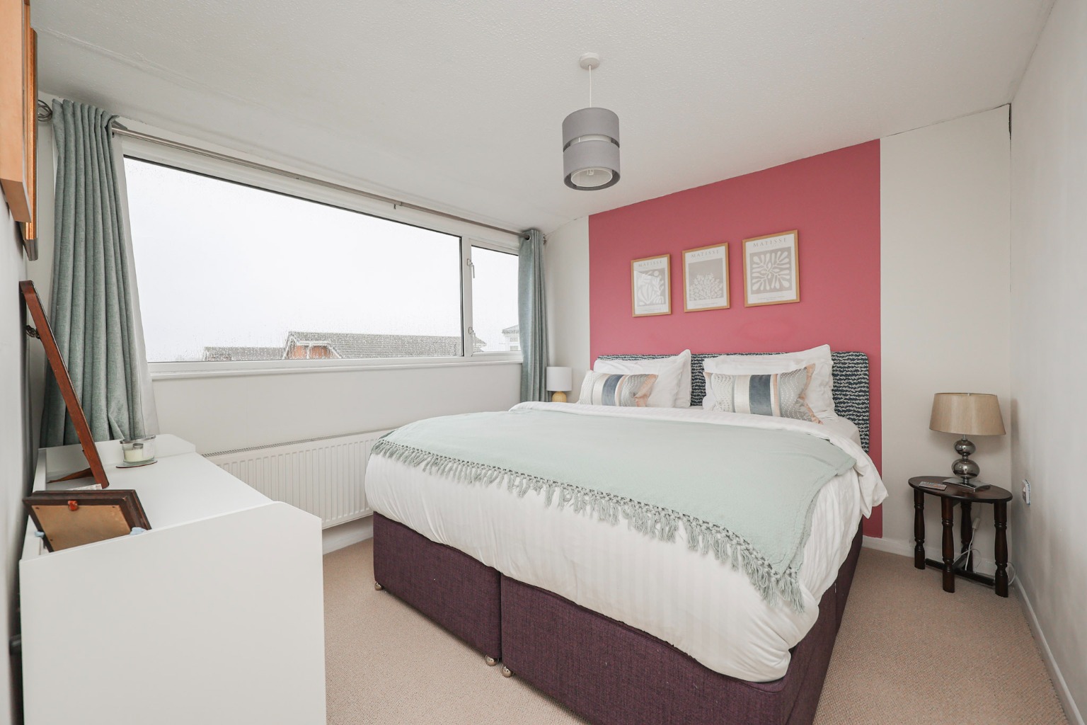 Bedroom Two is an exceptionally long and versatile double room. It features a large garden-facing window, radiator, built-in alcove storage, fitted carpet and excellent workspace potential, making it ideal as a bedroom, home office or hybrid space.