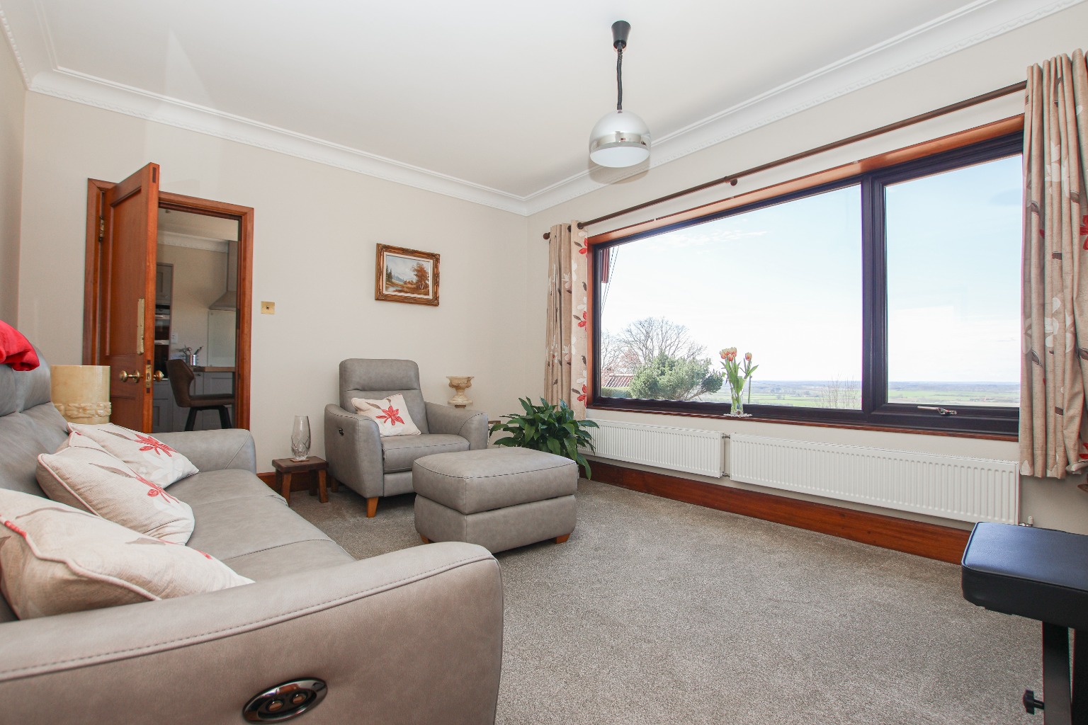 A further reception room, currently utilised as a snug, provides a cosy yet versatile space, again benefitting from those uninterrupted views, ideal as a second sitting room, reading space or family retreat.