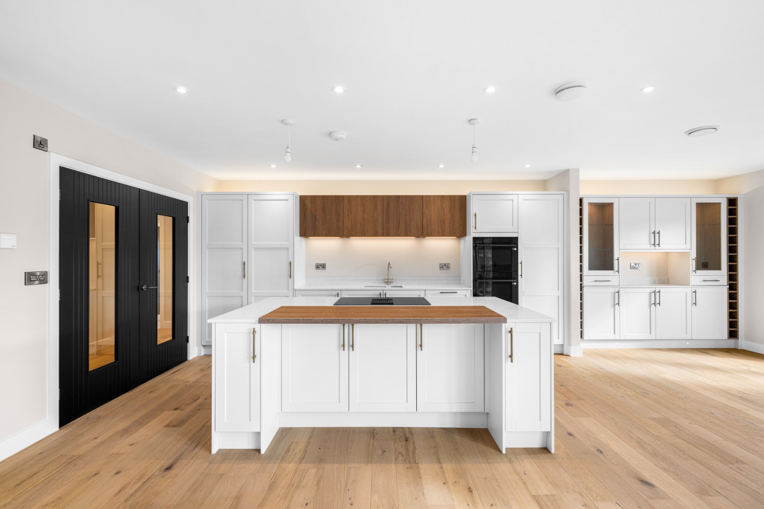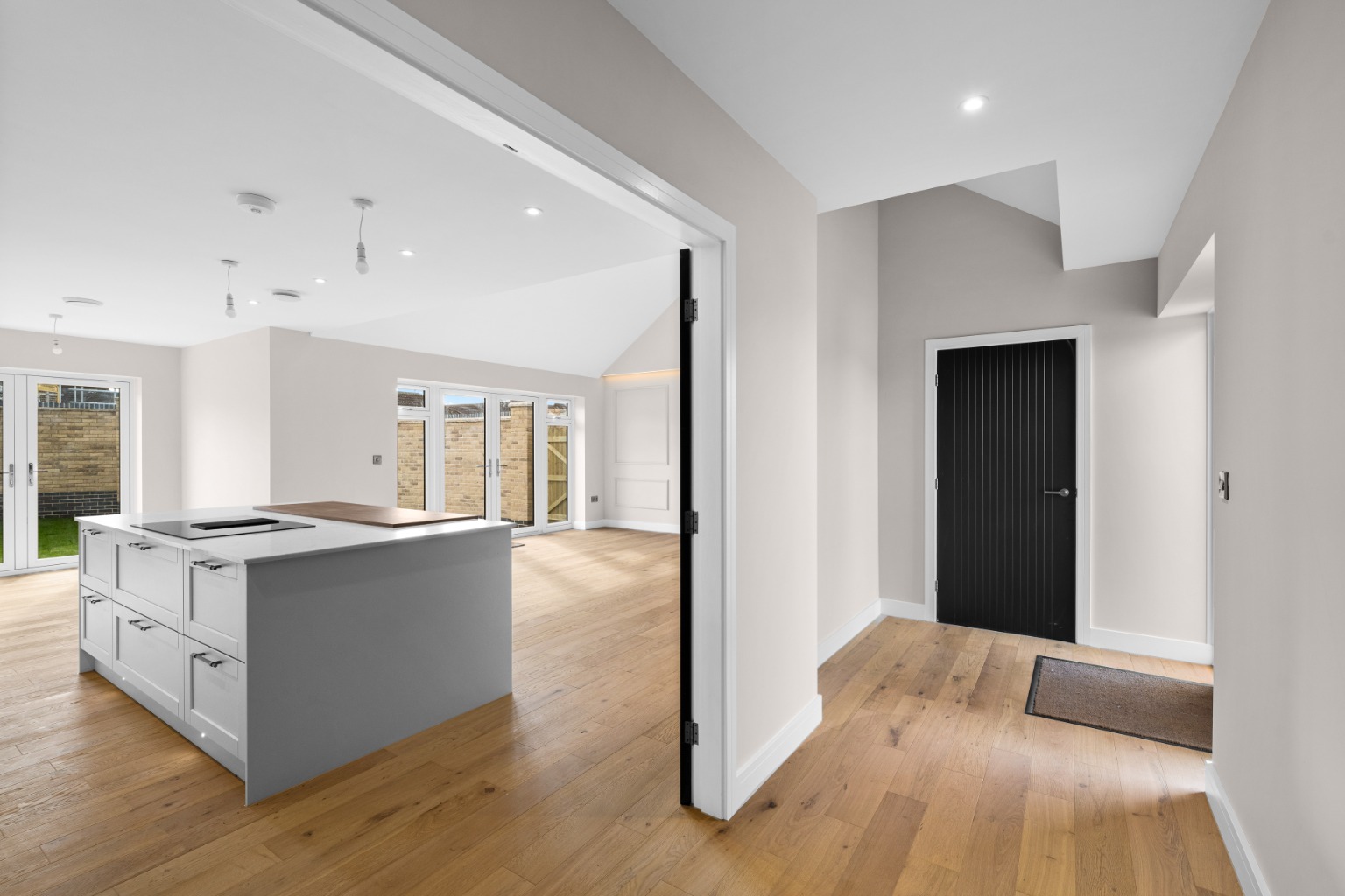 From the moment you enter, the sense of quality is immediate. Engineered wood flooring flows through the kitchen, dining and living areas, utility and hallway, creating a cohesive and elegant backdrop, while plush carpeting to the bedrooms adds softness and warmth. Feature black internal doors provide architectural definition throughout, with double-glazed internal doors opening into the kitchen to enhance light and flow.