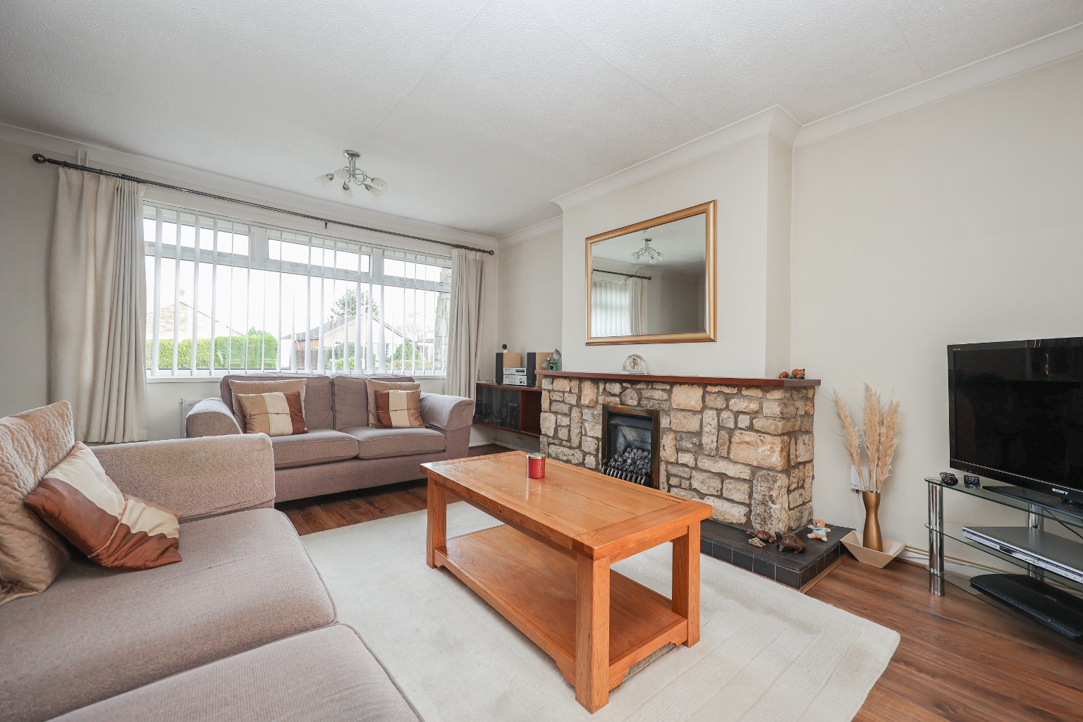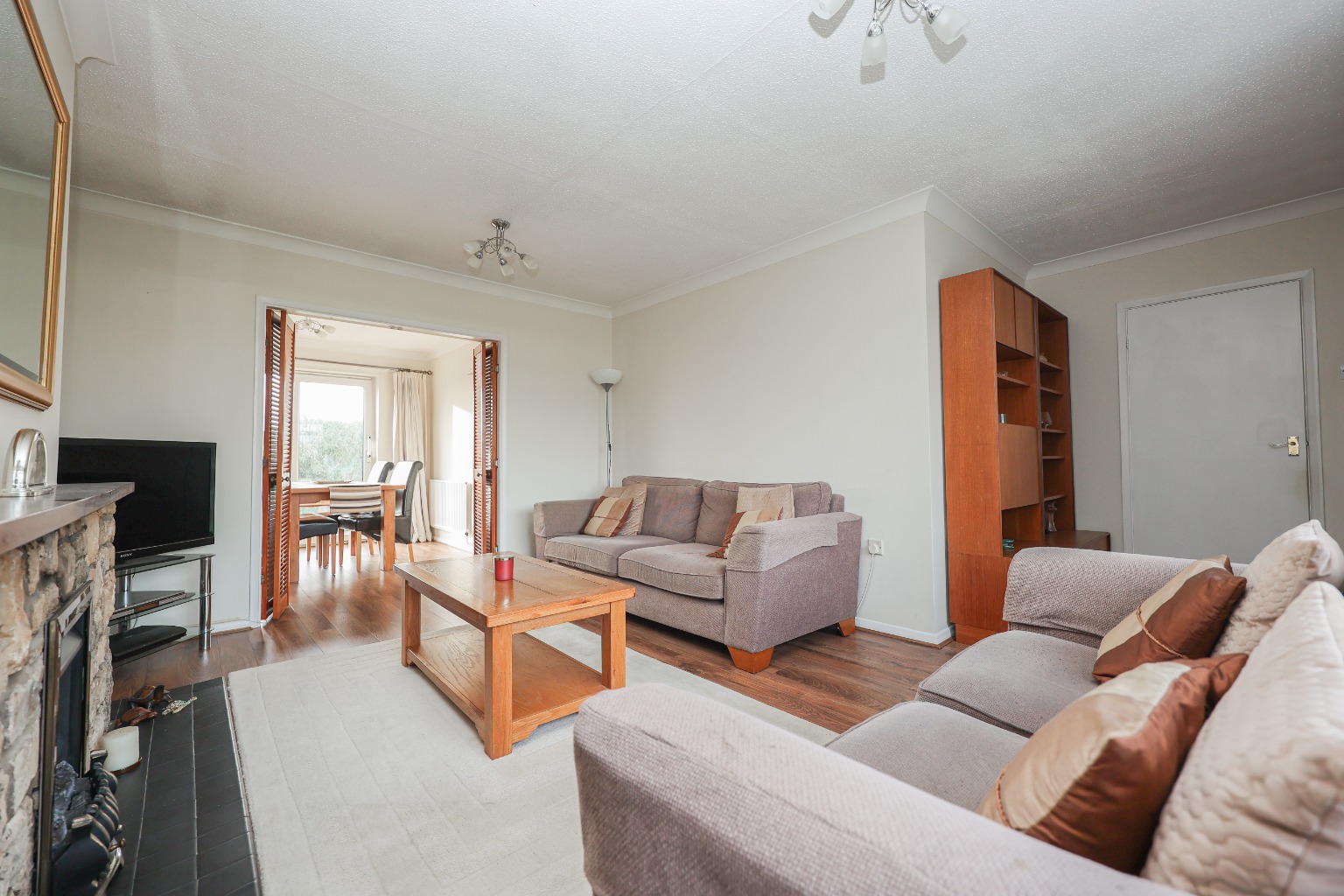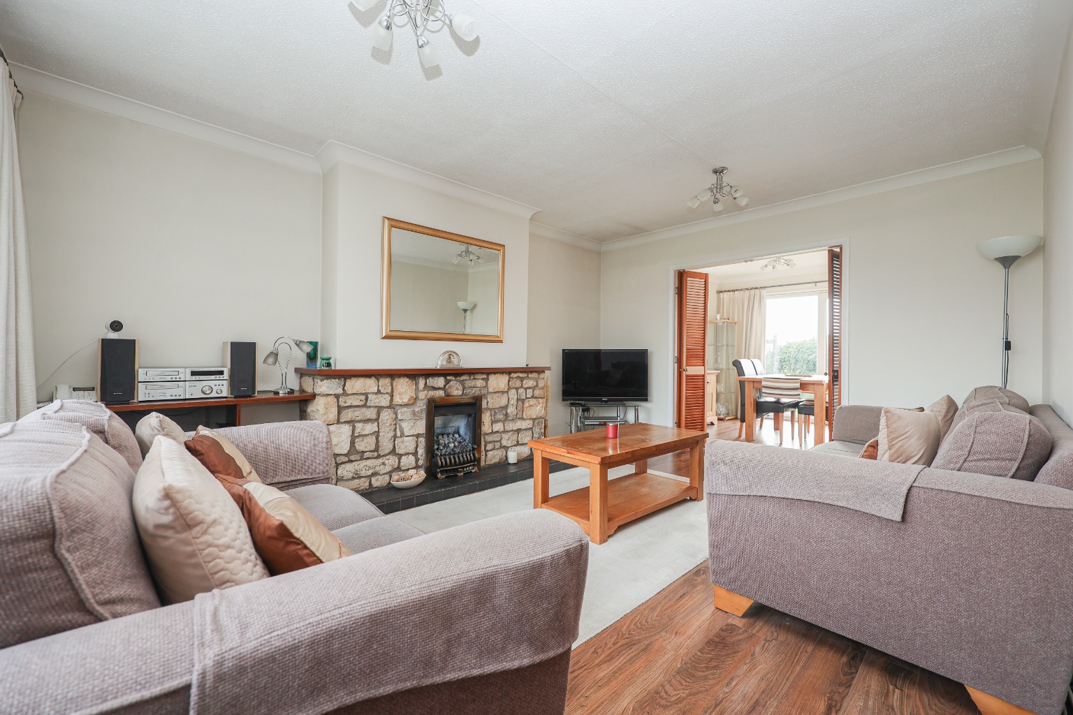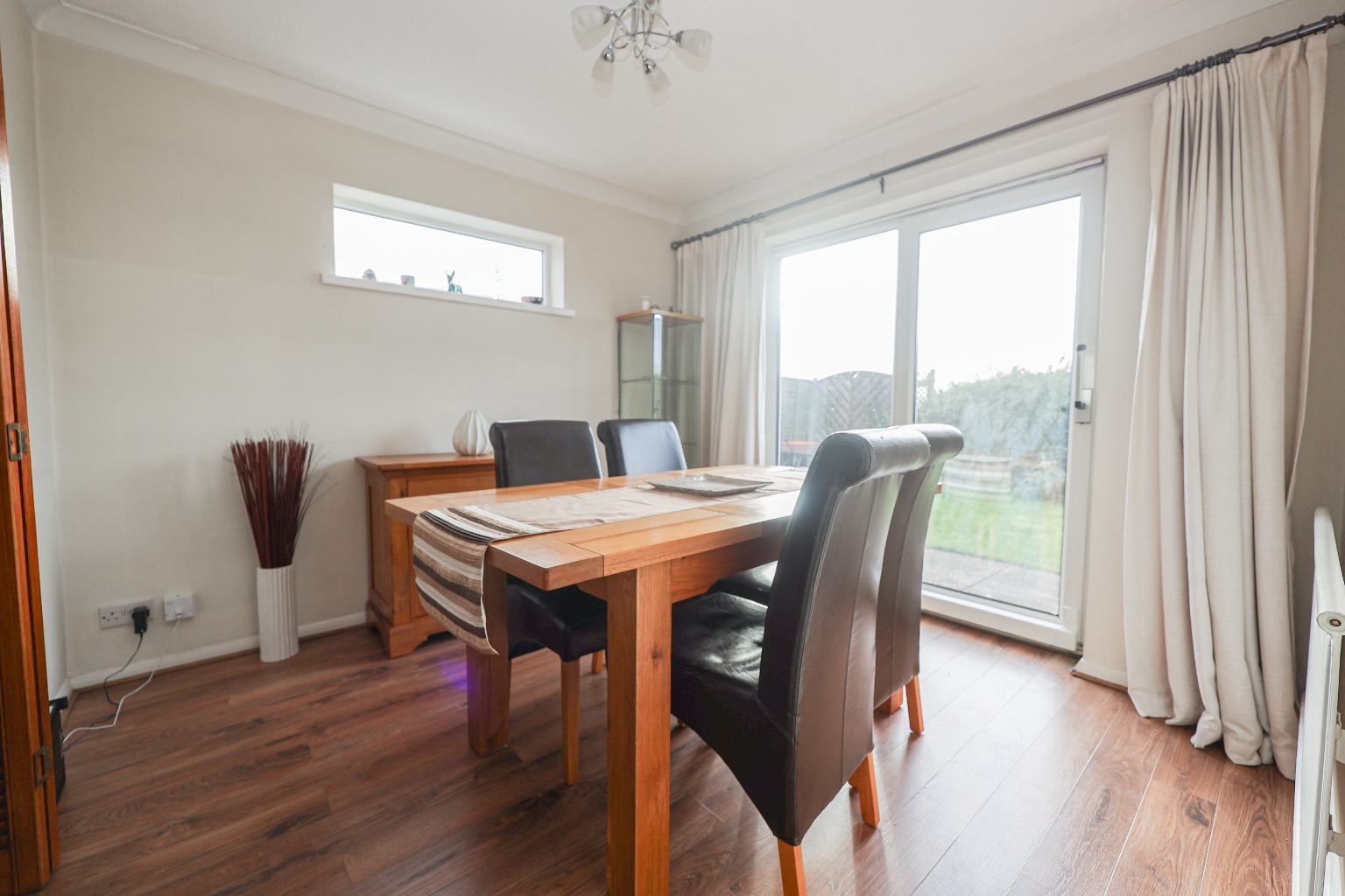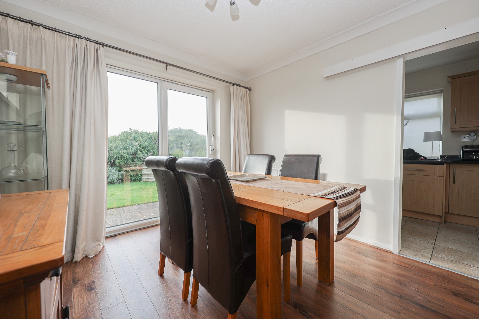 You enter the property via a uPVC front door into a welcoming and spacious hallway, which immediately sets the tone for the home. The hallway benefits from excellent built-in storage, provides access to all principal rooms, and offers a clear sense of flow throughout the bungalow. The lounge is positioned to the front of the property and is a generous, light-filled living space, featuring wooden flooring, a front-facing window, radiator, and a gas fire which creates a comfortable focal point. This room is ideal for relaxing while enjoying views over the front garden. Moving through, the dining room offers a versatile additional reception space, complete with a radiator, window, and a door opening directly onto the rear garden, making it perfect for everyday dining or entertaining.