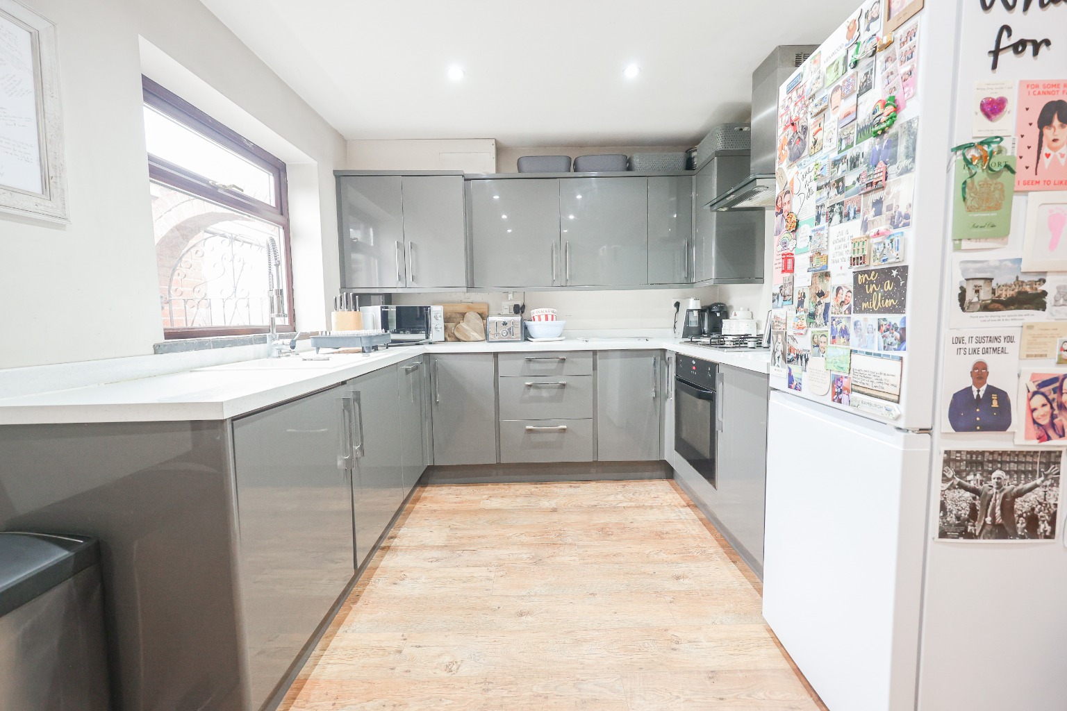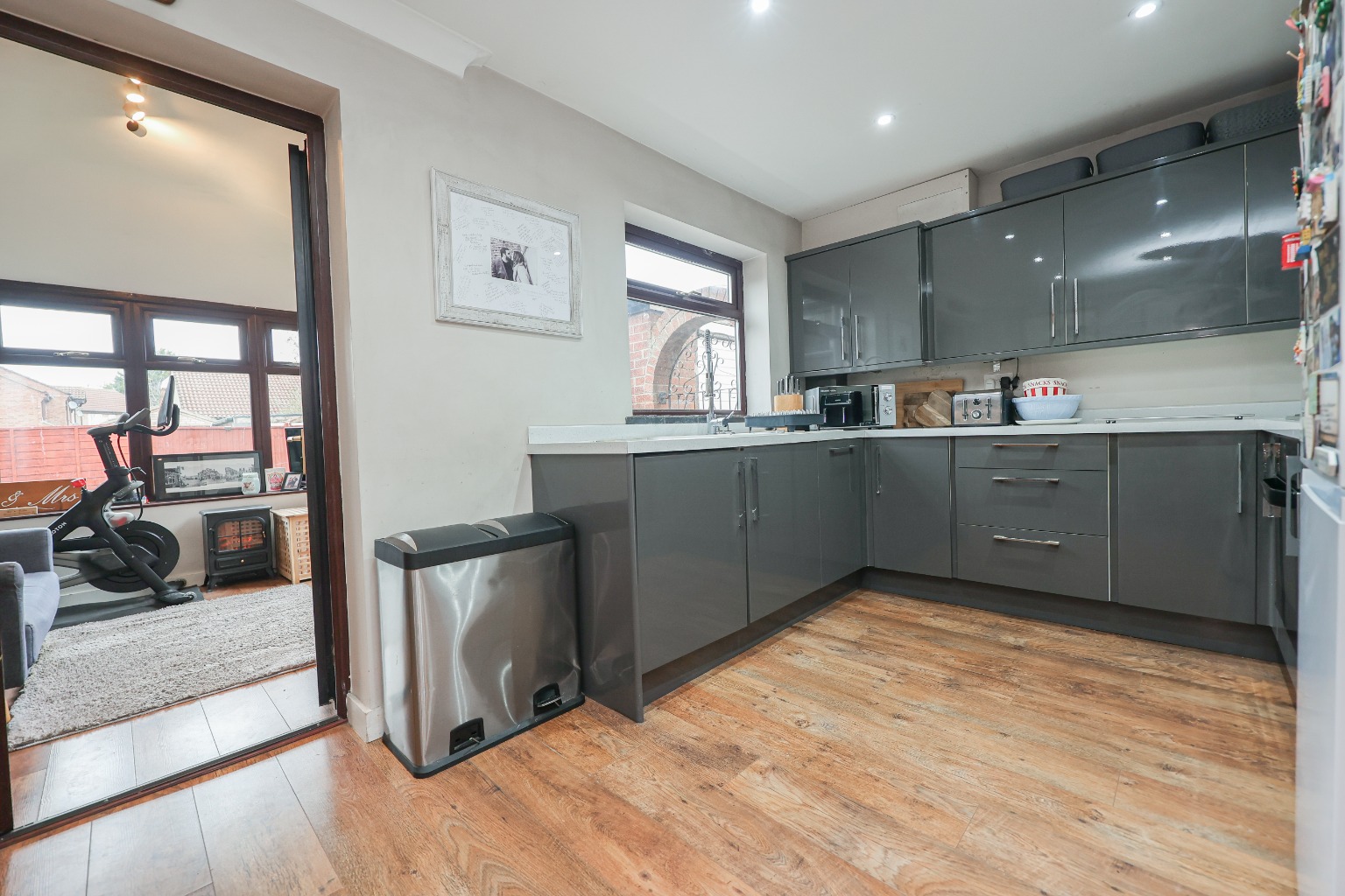 Positioned to the front of the home is the lounge (3.92m x 3.97m), a bright and comfortable reception space featuring a bay window to the front aspect which allows plenty of natural light to flow through the room. A fireplace creates a focal point while the room offers ample space for seating furniture. To the rear of the property sits the kitchen diner (4.90m x 2.70m), which provides a practical and sociable space for everyday living. The kitchen is fitted with a range of wall and base units with worktops over, incorporating a hob with oven below and extractor above, inset sink with tiled splashbacks and space for appliances including a washing machine. The dining area provides room for a table and chairs and benefits from useful under-stairs storage. Leading from the dining area is the conservatory/sunroom (3.23m x 2.62m), a versatile additional reception space which overlooks the rear garden. This bright room is ideal for relaxing, entertaining or enjoying views of the garden throughout the seasons, with doors providing direct access outside.