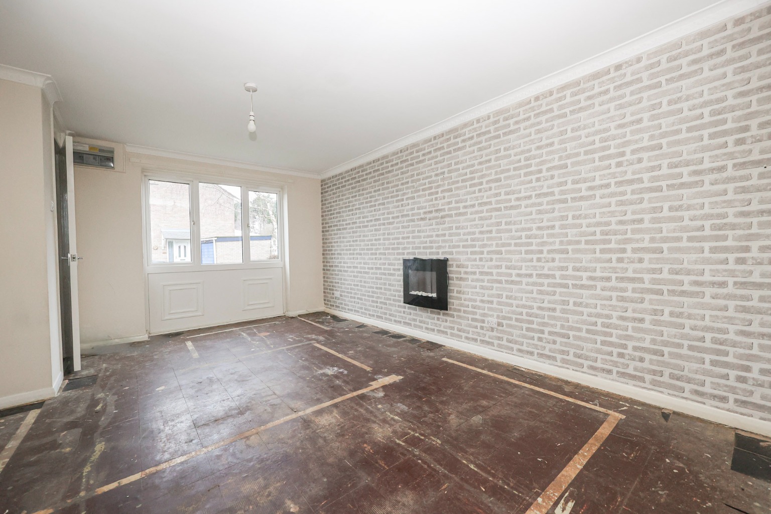 The lounge is positioned to the front of the property and offers a comfortable living space, featuring carpeted flooring, an electric fireplace, radiator, and a front-facing window allowing natural light to flow through the room.