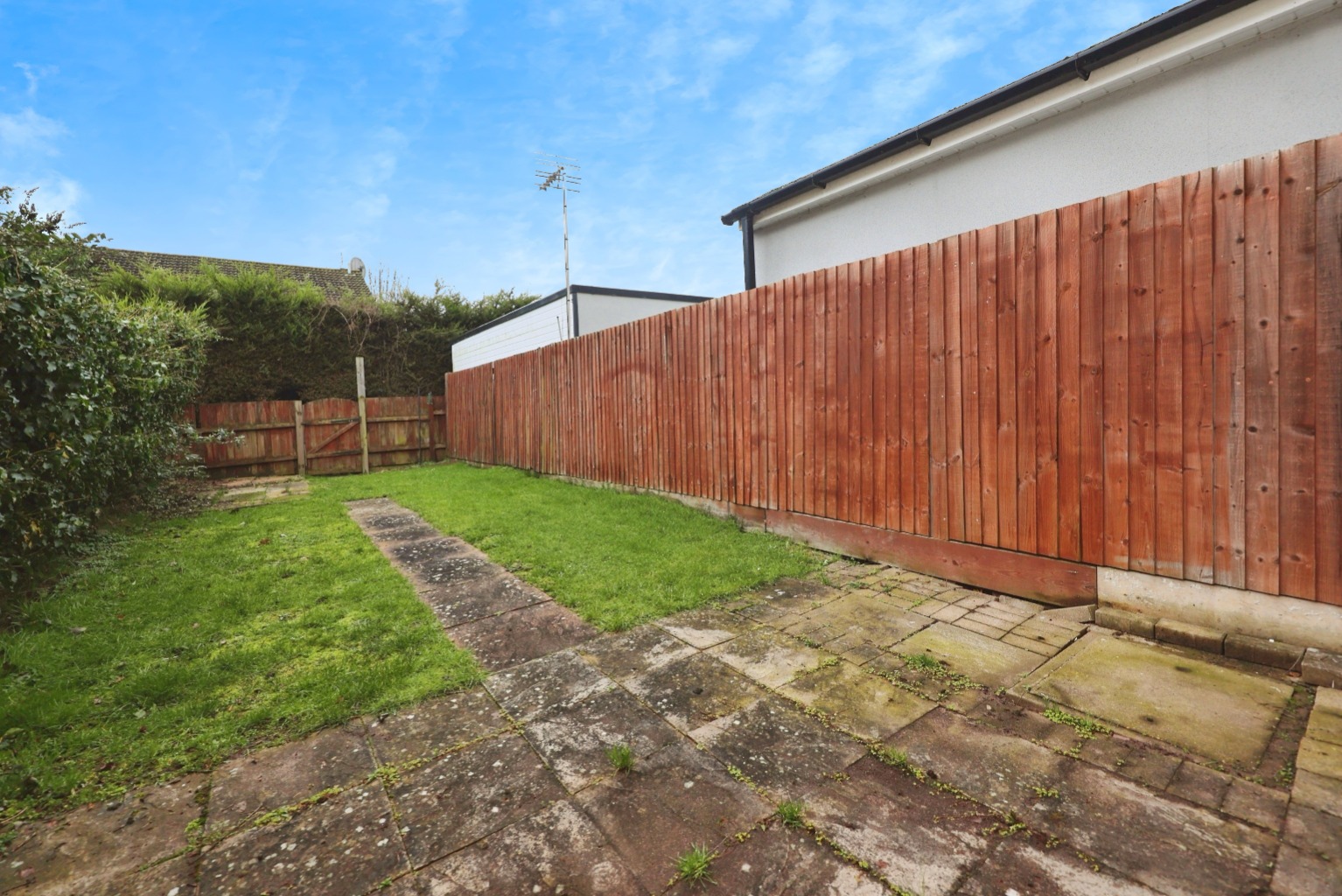 The enclosed rear garden is predominantly laid to lawn with a patio seating area, offering a pleasant outdoor space that is easy to maintain. A rear gate provides convenient access, ideal for bike storage or general access.