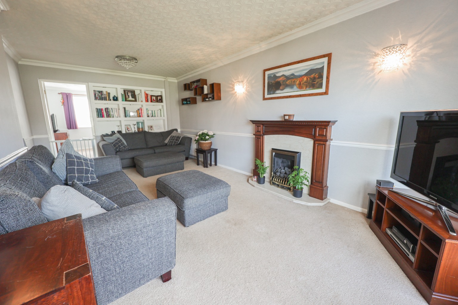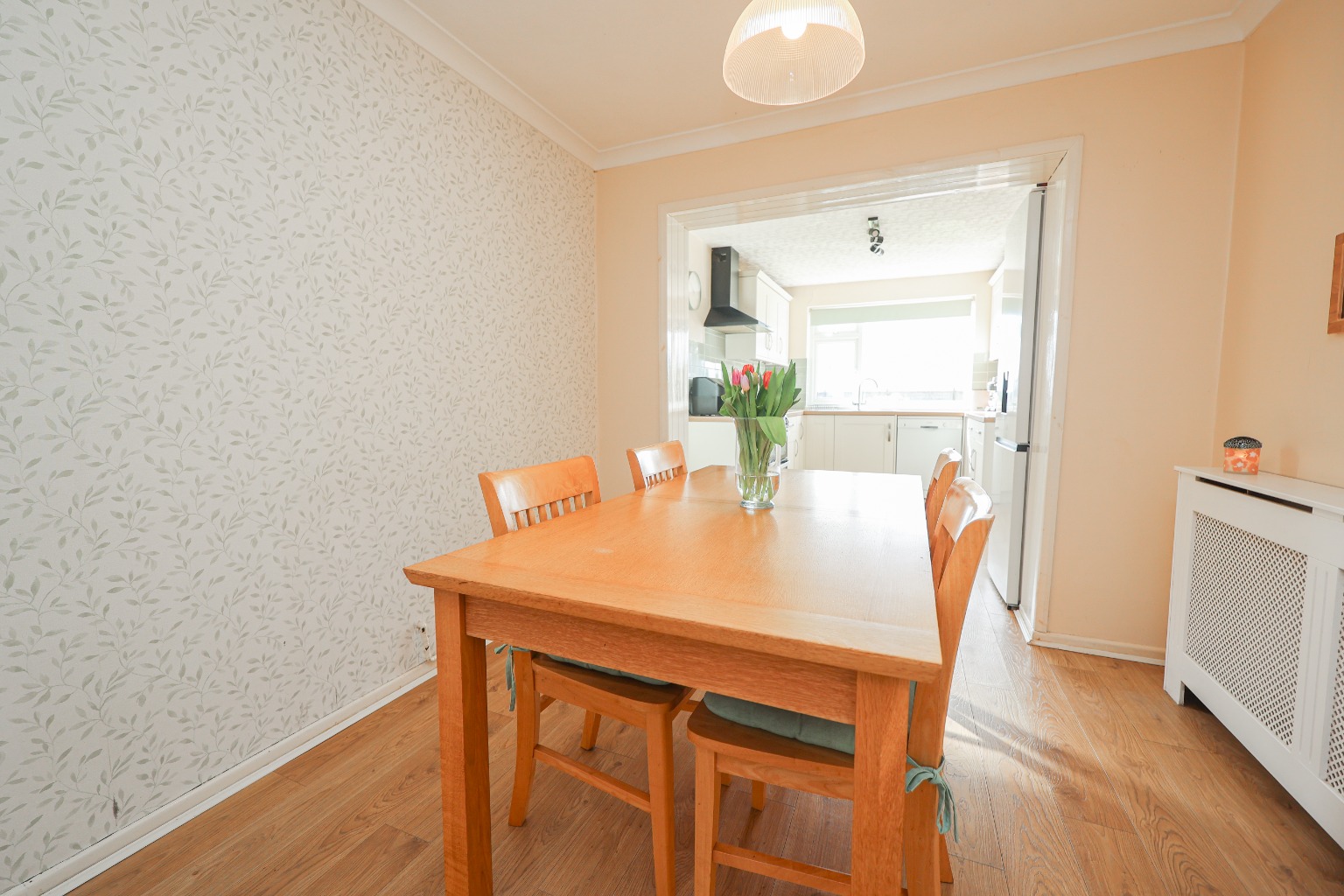 You are welcomed into the property via a spacious entrance hall, complete with telephone point, radiator, understairs cupboard with plumbing for a washing machine, and an additional built in cupboard with shelving. The ground floor offers a practical and versatile layout, beginning with a separate WC fitted with a low-level suite. The main lounge is a superb size, measuring approximately 6.20m x 3.10m (20'4" x 10'2"), and provides an excellent family living space. A feature inset coal-effect gas fire with wooden surround and marble hearth creates a focal point within the room, while two double radiators, coved cornicing and multiple wall light points add warmth and character. Leading through, the separate reception room measures approximately 3.61m x 3.30m (11'10" x 10'10") and provides the perfect space for multiple purposes such as an office, playroom, dining room or second sitting room. The kitchen measures approximately 3.61m x 2.74m (11'10" x 9'0") and is fitted with a range of worktops with cupboards and drawers beneath, complementary wall mounted units, a one and a half bowl sink with drainer, plumbing for a dishwasher or washing machine, and space for a cooker with both gas and electric connections available, offering flexibility for a range of appliances. Beyond the kitchen is a further dining area measuring approximately 3.20m x 2.74m (10'6" x 9'0"), offering additional space for family meals, breakfast seating or potential open-plan living.