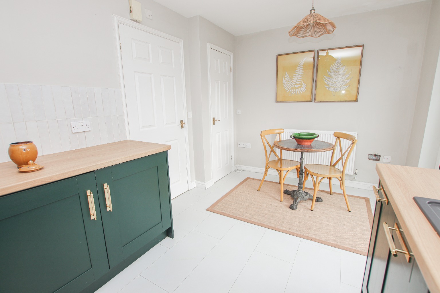 To the rear sits the heart of the home, the kitchen/diner which was upgraded by the current owner approximately four years ago. This space has been thoughtfully designed with modern wall and base units, complementary work surfaces and integrated appliances to included oven/hob and extractor, undercounter fridge and separate freezer and dishwasher. There is ample space for a dining table, making it perfect for everyday meals or social occasions, while patio doors provide direct access out to the rear garden, enhancing the sense of flow between inside and out.