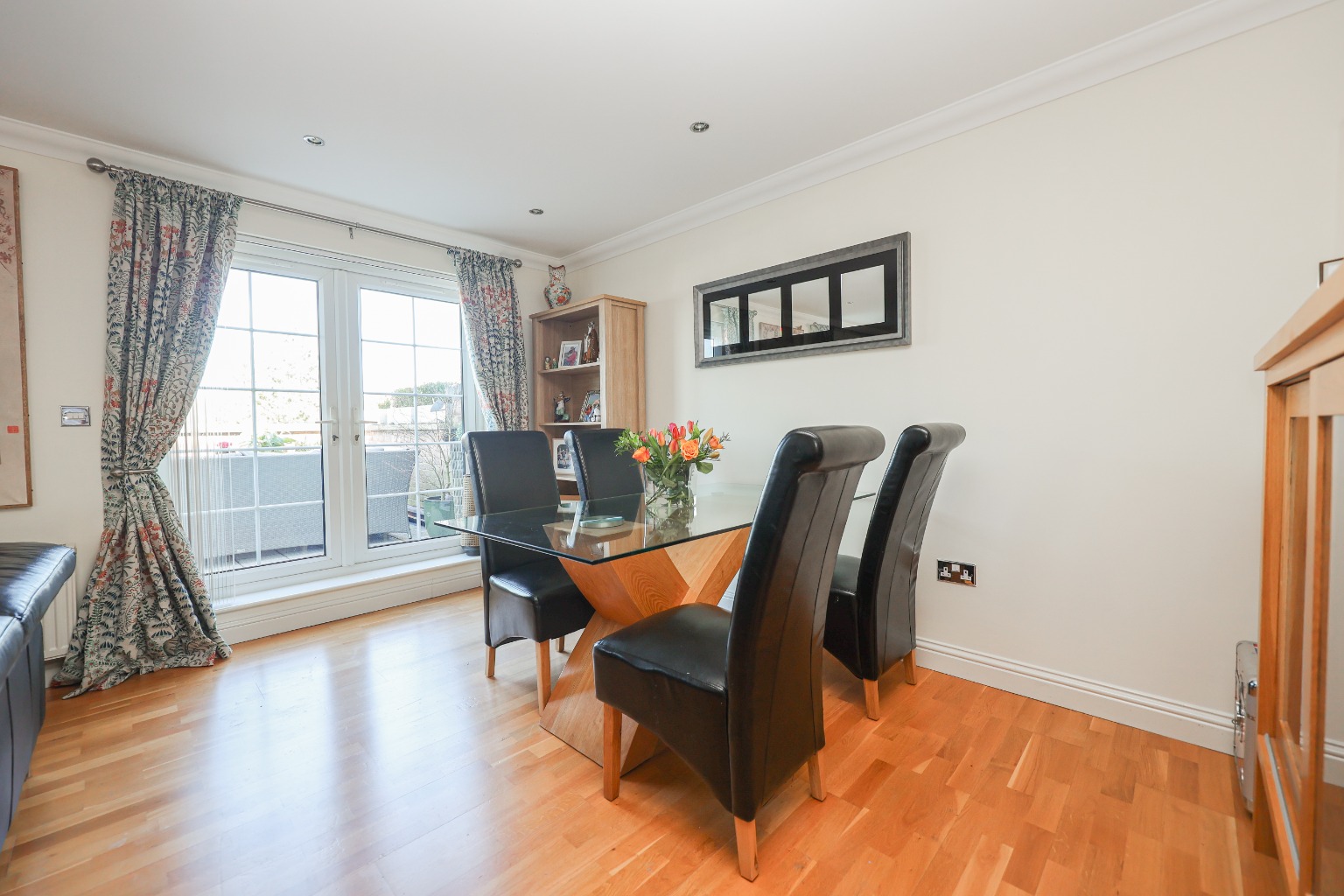 Externally, the property benefits from two secure allocated parking spaces within a gated car park. One of the property’s most impressive features is the generous first floor roof terrace, providing the perfect space for outdoor dining, entertaining or simply relaxing whilst taking in the marina views. The private balcony accessed from the principal bedroom offers a further outdoor seating area and an additional vantage point across Burton Waters.