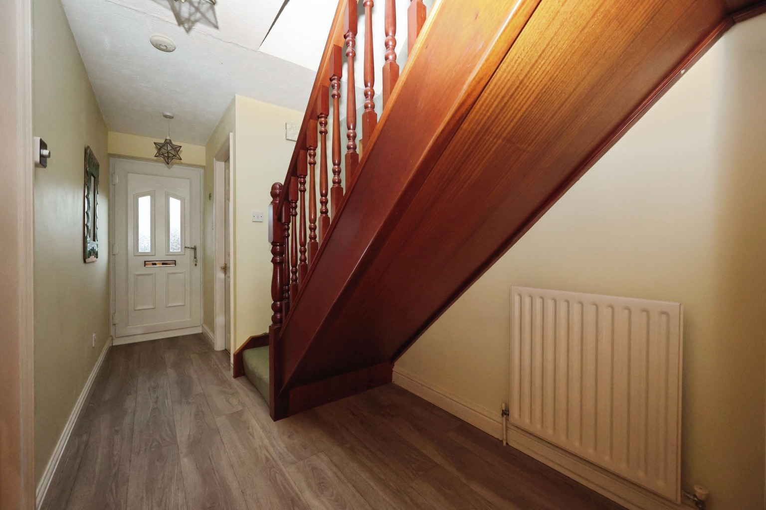 Step inside through the welcoming entrance hallway, which provides access to the principal reception spaces, a handy downstairs WC, and stairs to the first floor with useful storage beneath.