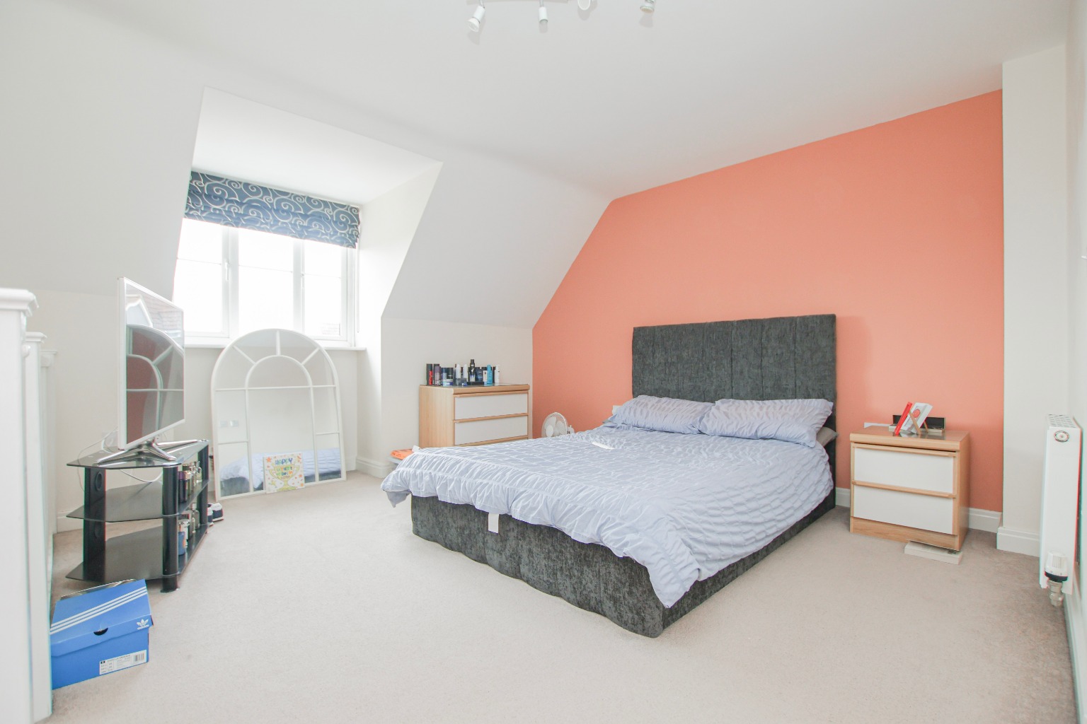 Occupying the entire top floor is the impressive principal bedroom suite. Bedroom one is a fantastic-sized double room measuring approximately 4.95m x 3.81m (16'3" x 12'6"), with excellent built-in storage and access to loft space. The en-suite shower room measures approximately 2.54m x 1.68m (8'4" x 5'6") and is fitted with a shower, wash basin, W.C., radiator and Velux roof window.
