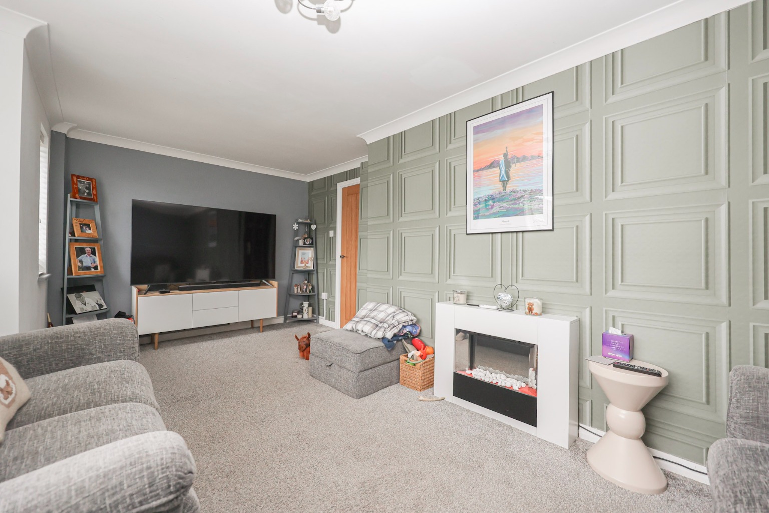 The main lounge (5.40m x 2.70m) is positioned to the rear of the property and provides a comfortable and spacious living environment. Featuring an electric fire with provision for a wood burner, large windows overlooking the garden, and multiple power points, this room is perfect for everyday living and entertaining.