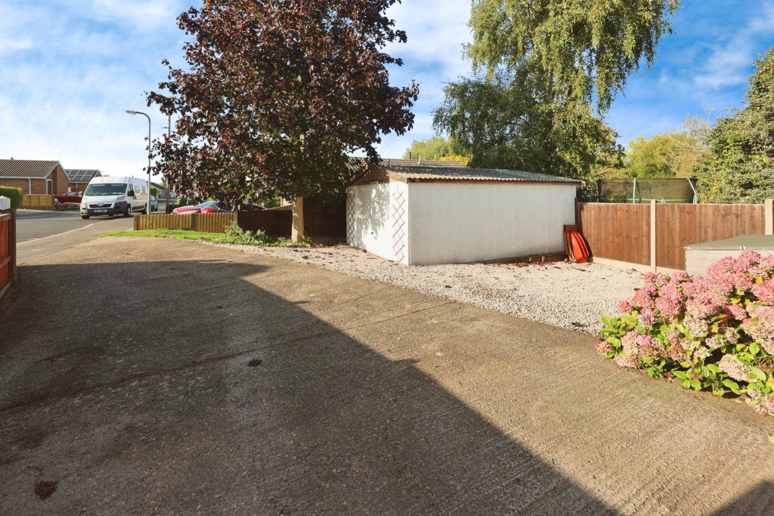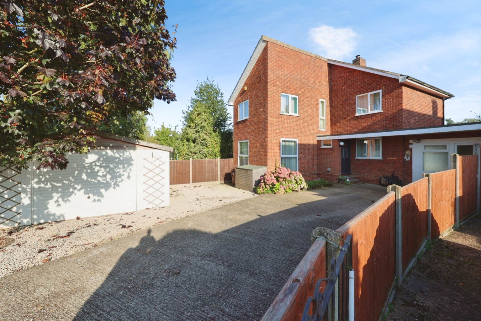 Outside, the property enjoys a generous plot with a driveway providing ample off-road parking for several vehicles. There is also an additional single garage. To the side of the property is an additional lawned garden which extends around to the rear, where there is a decked seating area, hardstanding for a shed, decorative shrub borders and enclosed fencing.