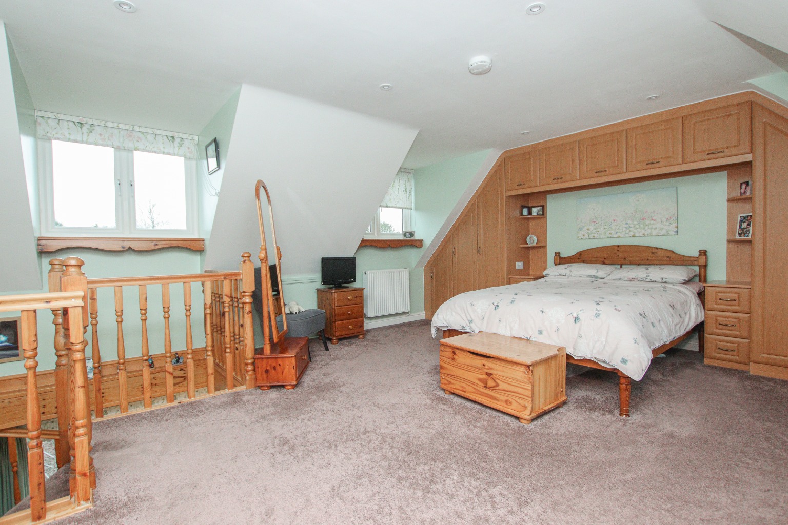The spacious first floor landing benefits from both a front window and skylight, enhancing the natural brightness, and provides access to all bedrooms and bathrooms.