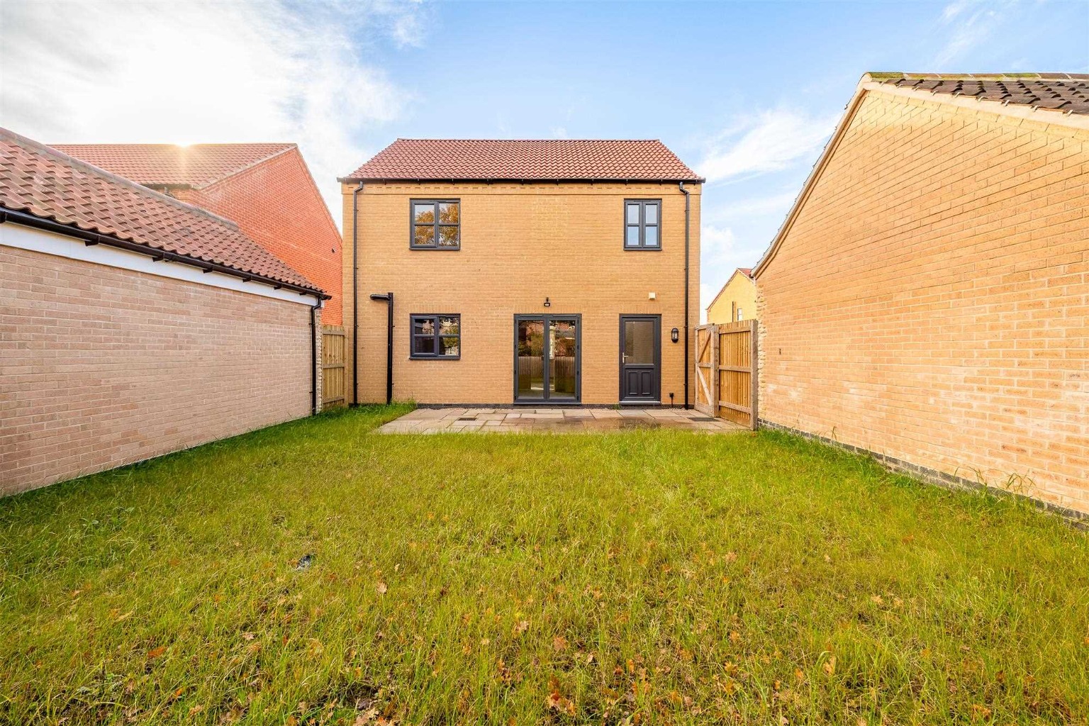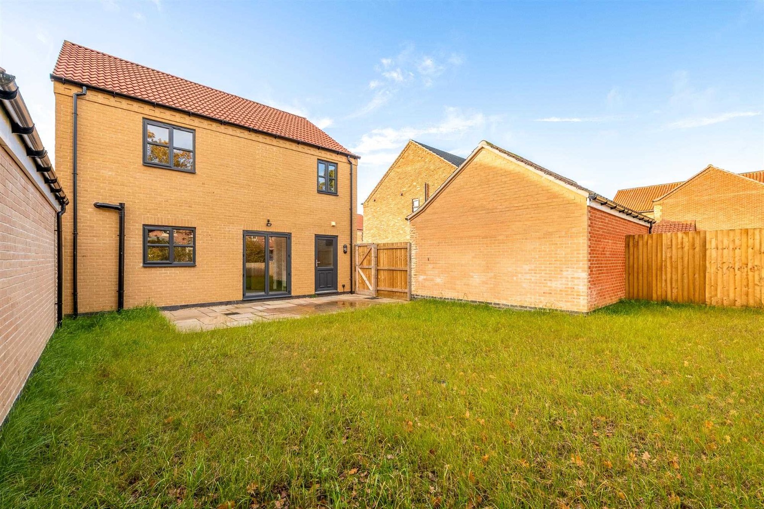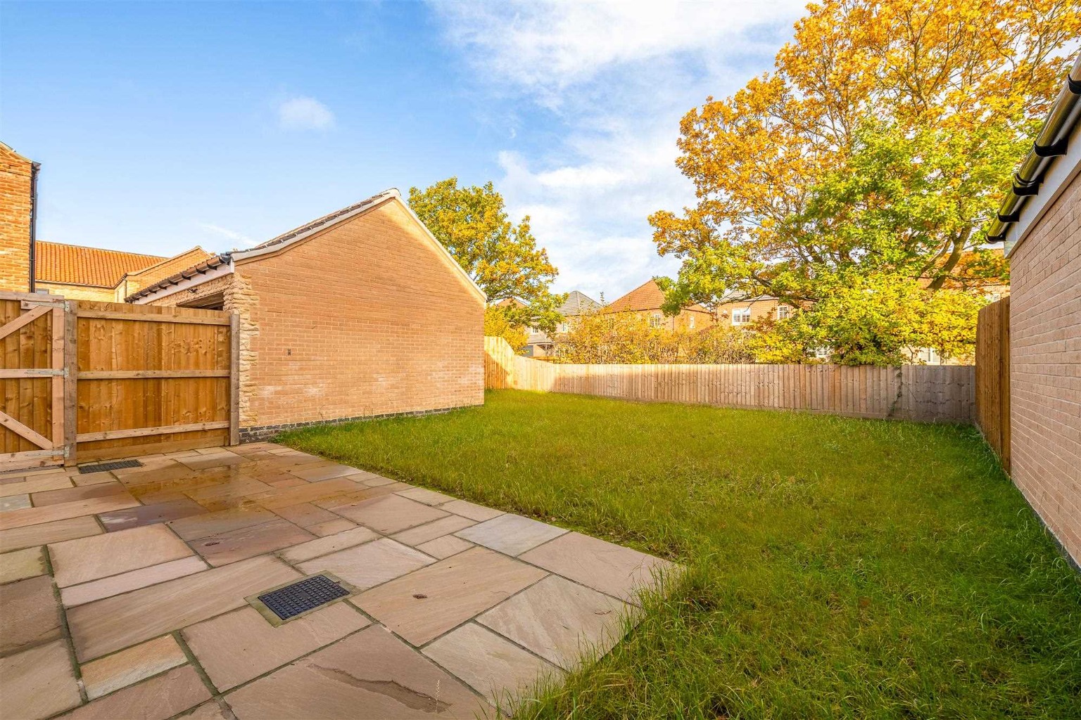 - Premium Indian sandstone patio with seeded front and rear gardens