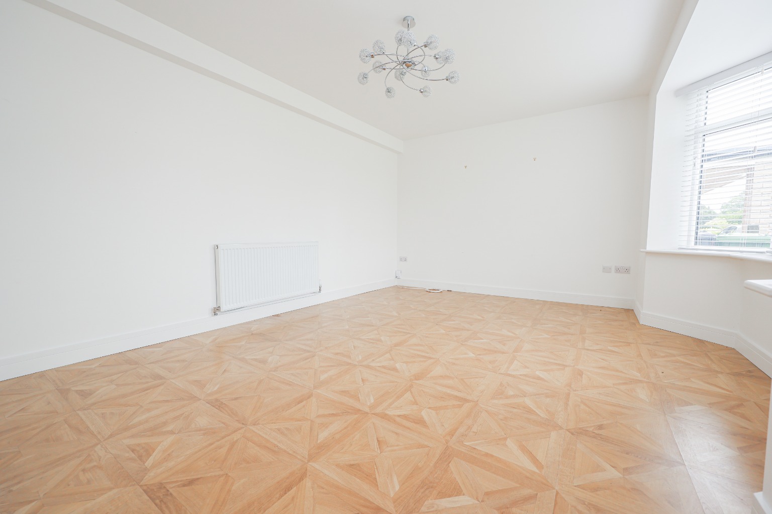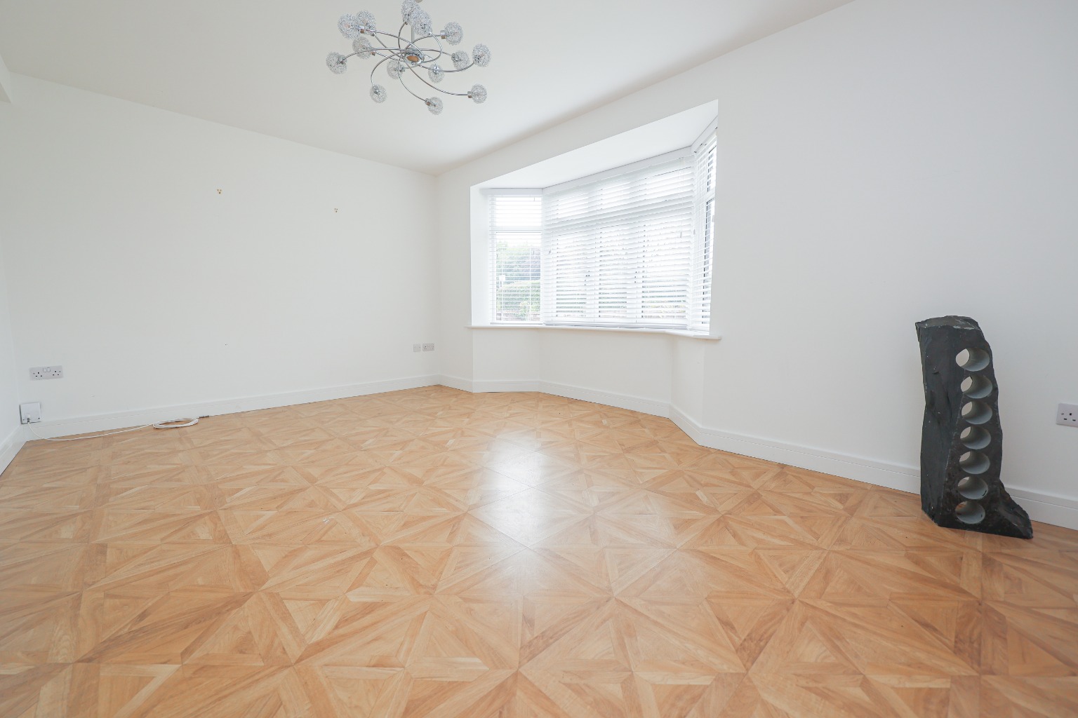 A spacious, light-filled lounge featuring a large bay window, neutral décor, and a cosy yet elegant ambience.