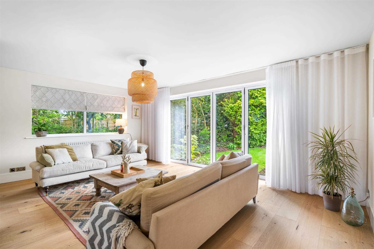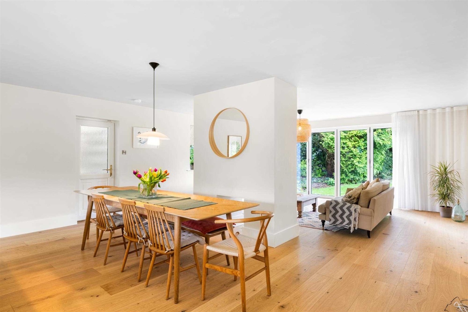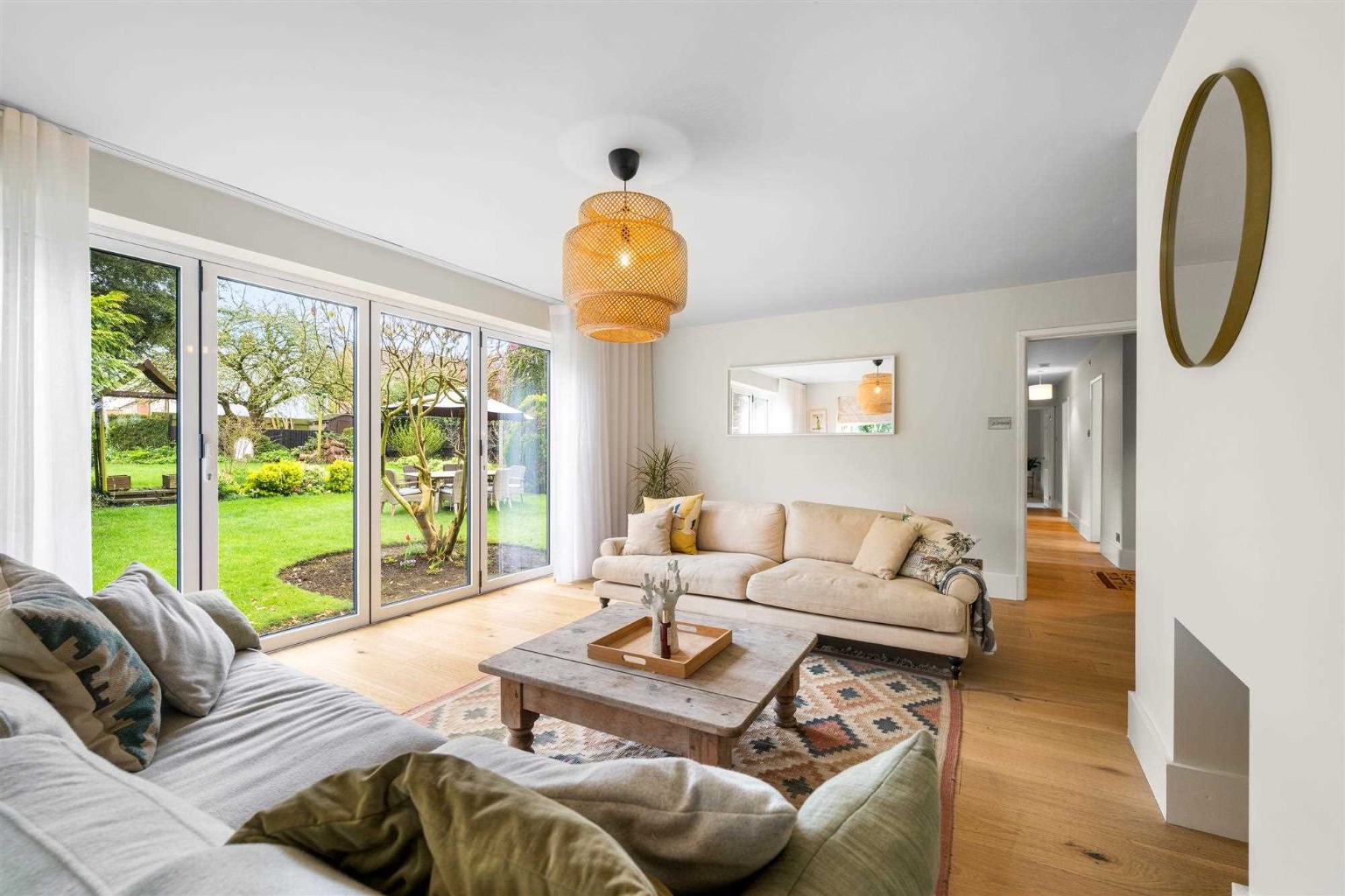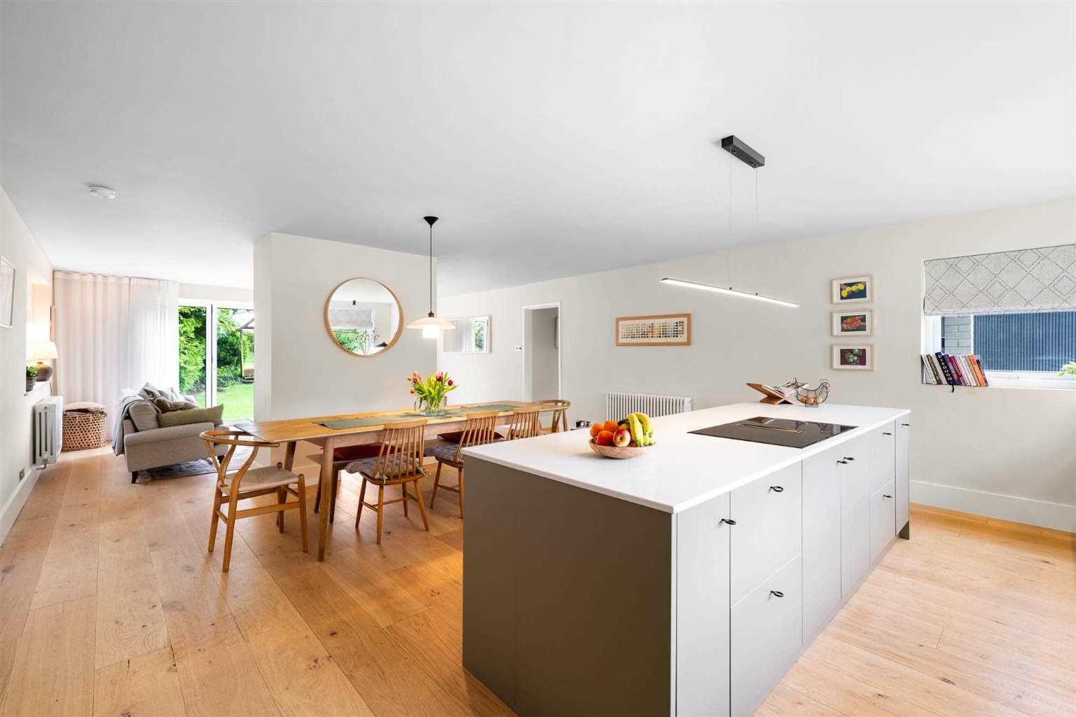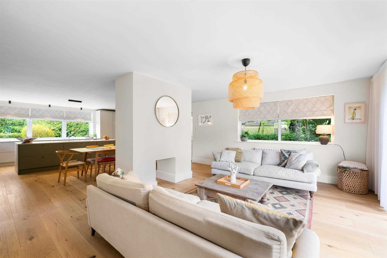 Both bathrooms have been completely refitted, featuring modern sanitary ware, bespoke vanity units, contemporary tiling, and updated plumbing. High-end oak engineered flooring has been laid throughout the living areas, while new carpets bring warmth and comfort to the bedrooms. The entire property has been tastefully decorated with Farrow & Ball paint, giving each room a fresh, elegant feel. The internal layout has also been reconfigured to create a stunning open-plan kitchen, dining, and living area, perfect for modern family living.