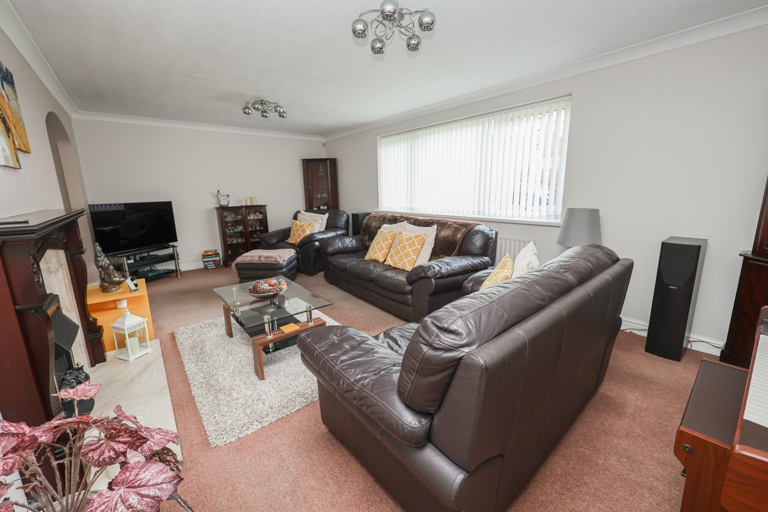 Bright and airy living space with a double-glazed window to the front aspect, an electric fire with an elegant surround, inset and hearth, TV point, telephone point, radiator, coving, and an archway leading into: