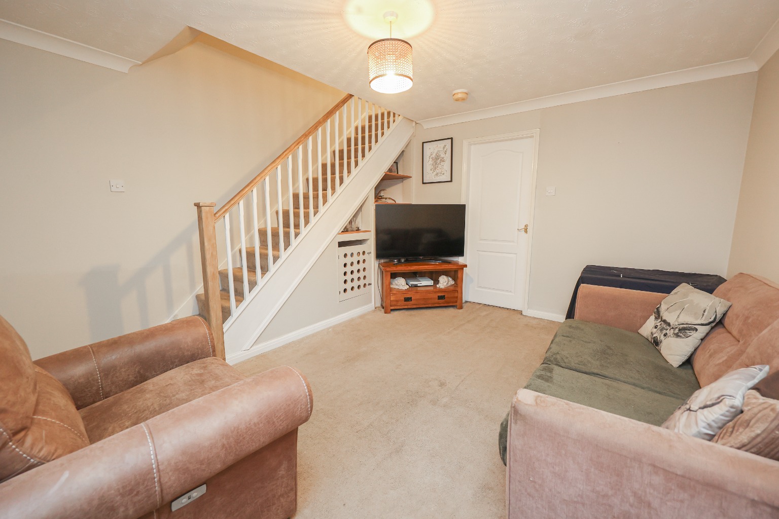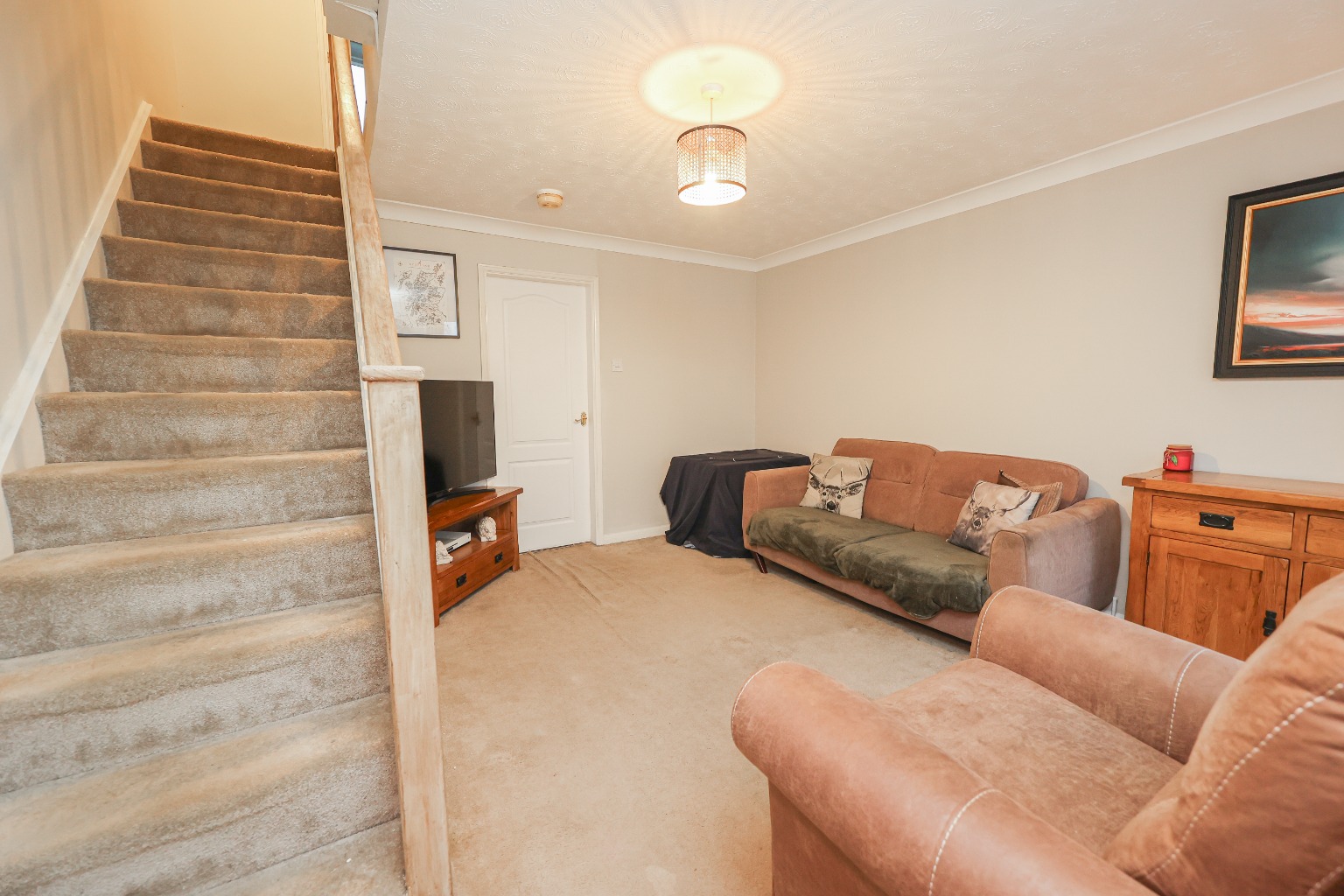 Step through the porch into a welcoming lounge (3.94m x 4.14m), a bright and airy space featuring fitted carpet, skirting, radiator, window to the front aspect, and handy under-stairs storage. This room provides the perfect setting for cosy evenings or entertaining guests.