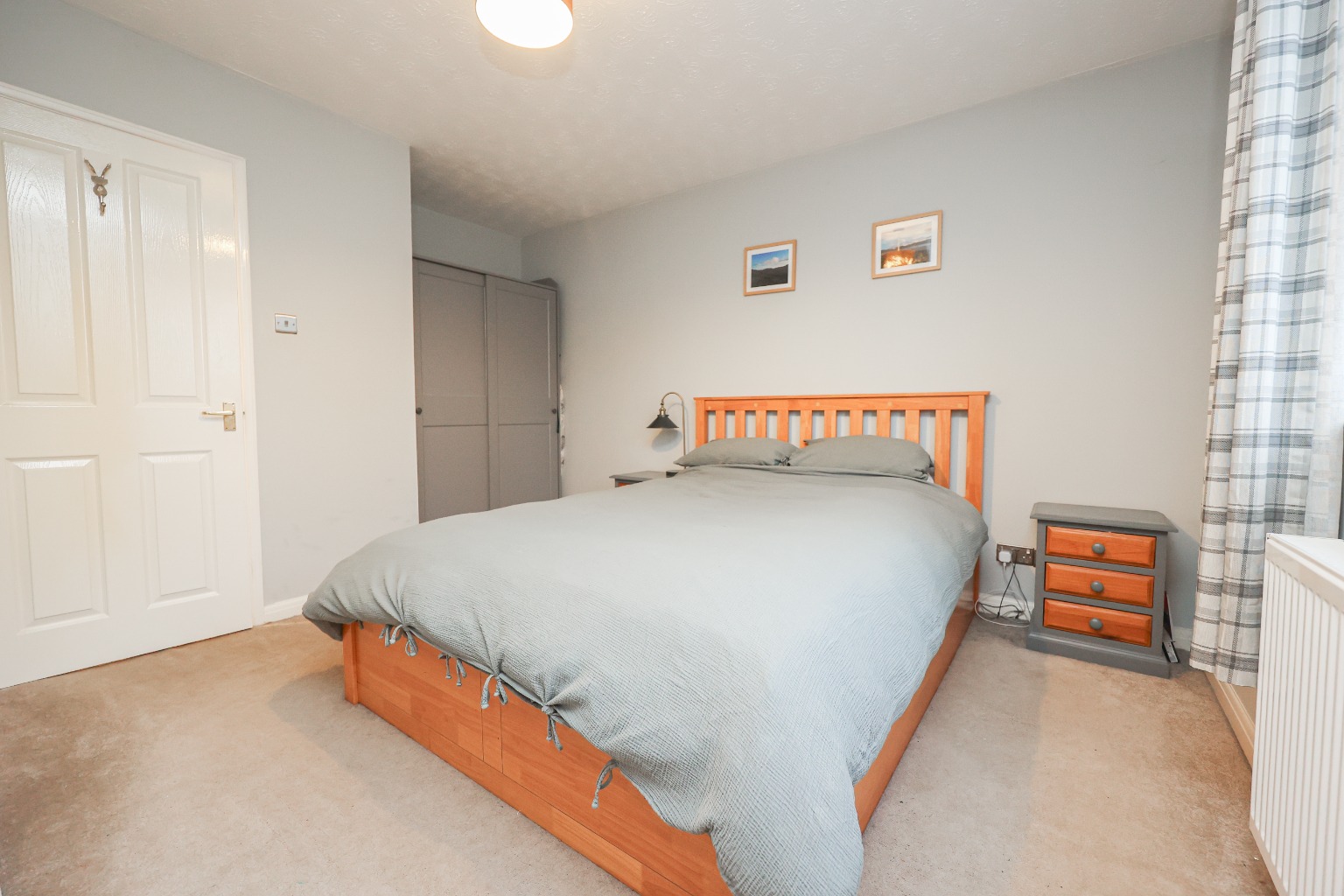Bedroom One (4.22m x 3.96m) is a spacious double overlooking the front aspect, with fitted carpet, radiator, and ample space for wardrobes.