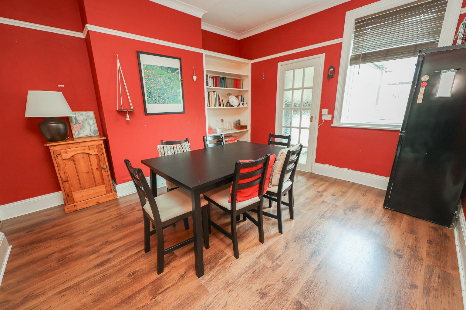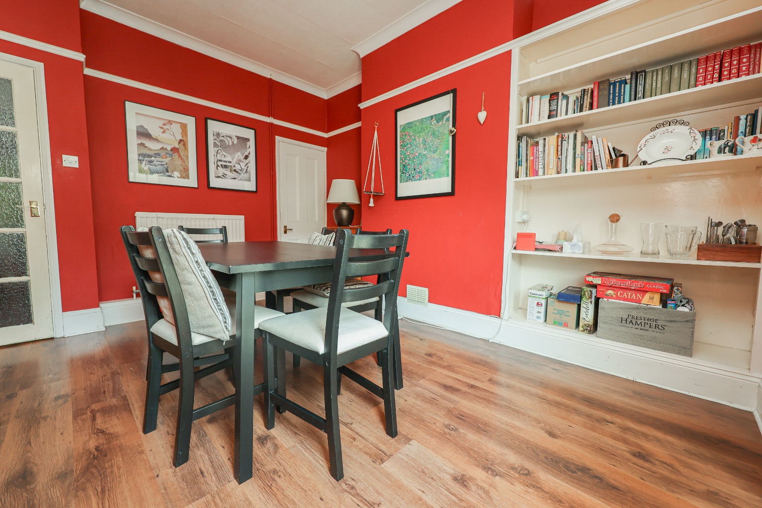 Flowing from here is the Dining Room (3.91m x 3.53m / 12'10" x 11'7"), an inviting space ideal for both everyday meals and hosting. There’s plenty of charm in the alcove shelving and a deep under-stairs cupboard offering excellent storage. A rear window draws in light from the courtyard, and the room’s size allows for a full dining set — or even a mix of dining and workspace, if you're working from home.