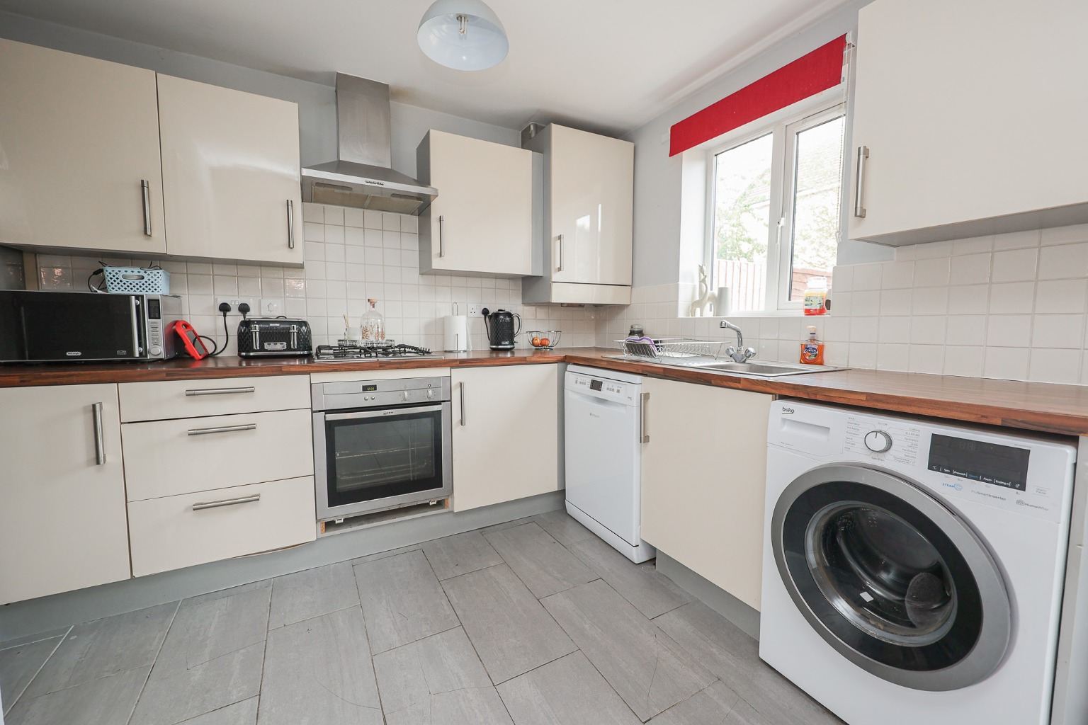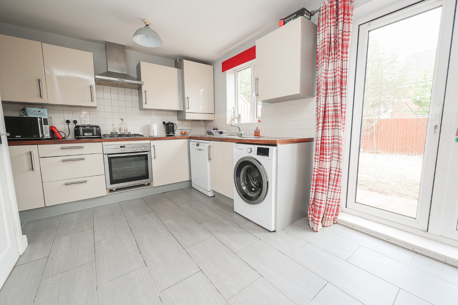 From the lounge, a door leads through to the rear of the property where you'll find the heart of the home: a beautifully presented Kitchen/Diner (approx. 5.00 × 3.00 m / 16'5″ × 9'10″). This space combines practicality with style, offering a range of fitted wall and base units, integrated appliances, and ample room for a family-sized dining table. Sliding patio doors open directly onto the rear garden, allowing light to pour in and offering seamless indoor-outdoor living—ideal for summer entertaining or weekend breakfasts in the sunshine.