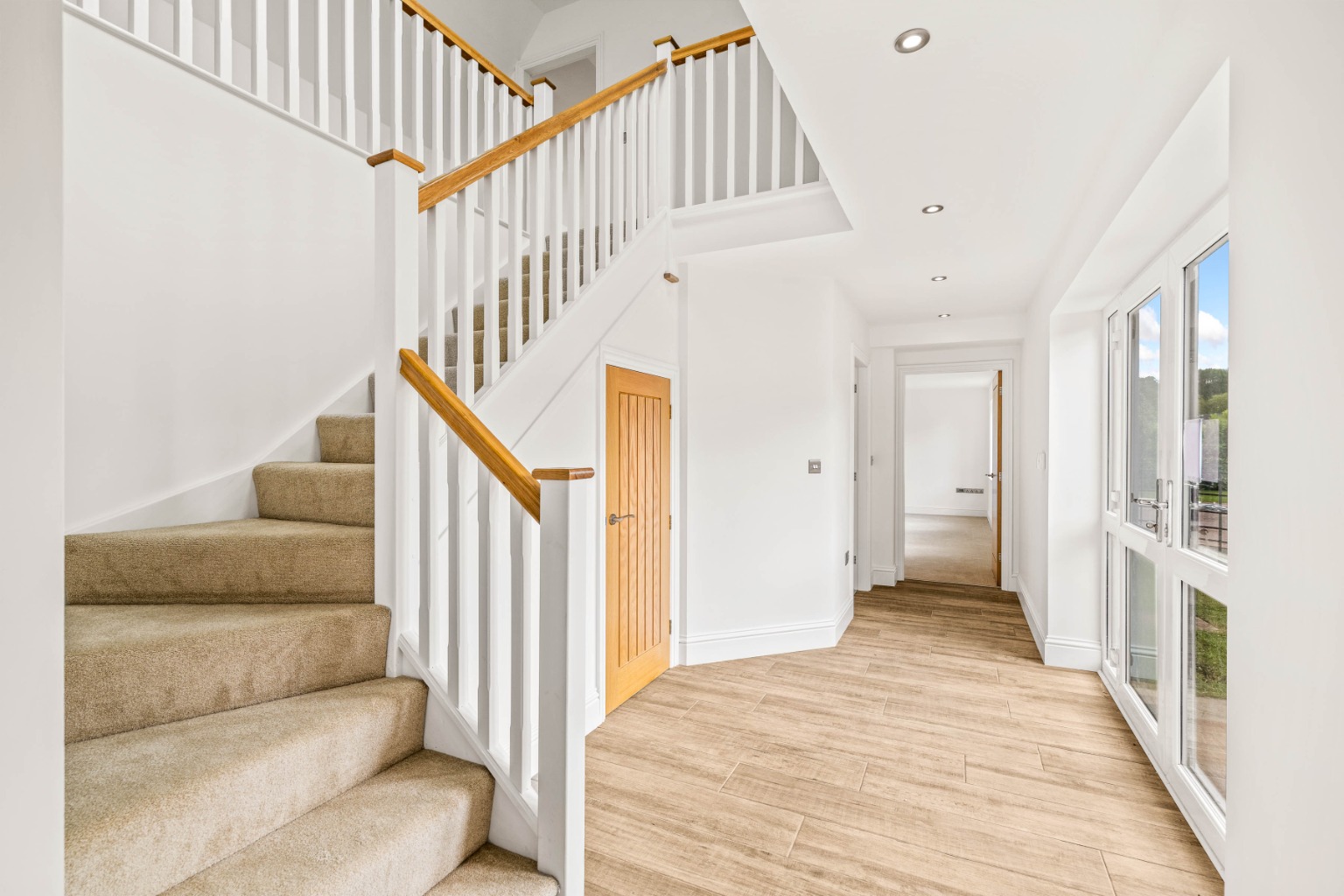 Keepers Lodge boasts a striking exterior with Wienerberger Hathaway Brindled Bricks and anthracite garage doors. Inside, enjoy underfloor heating and a cosy multistove in the lounge. Double doors from multiple rooms connect seamlessly to the garden, perfect for both relaxation and entertaining.