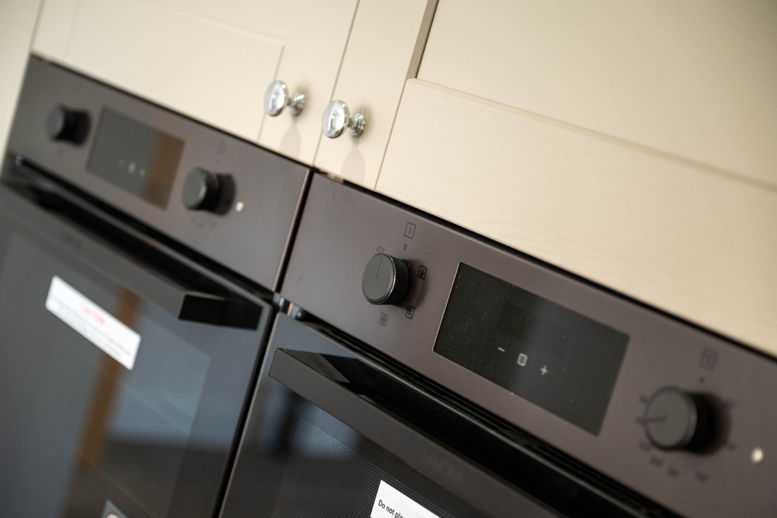 - Lamona double oven, integrated microwave, dishwasher, induction hob, extraction hood, full fridge, full freezer and undermounted sink