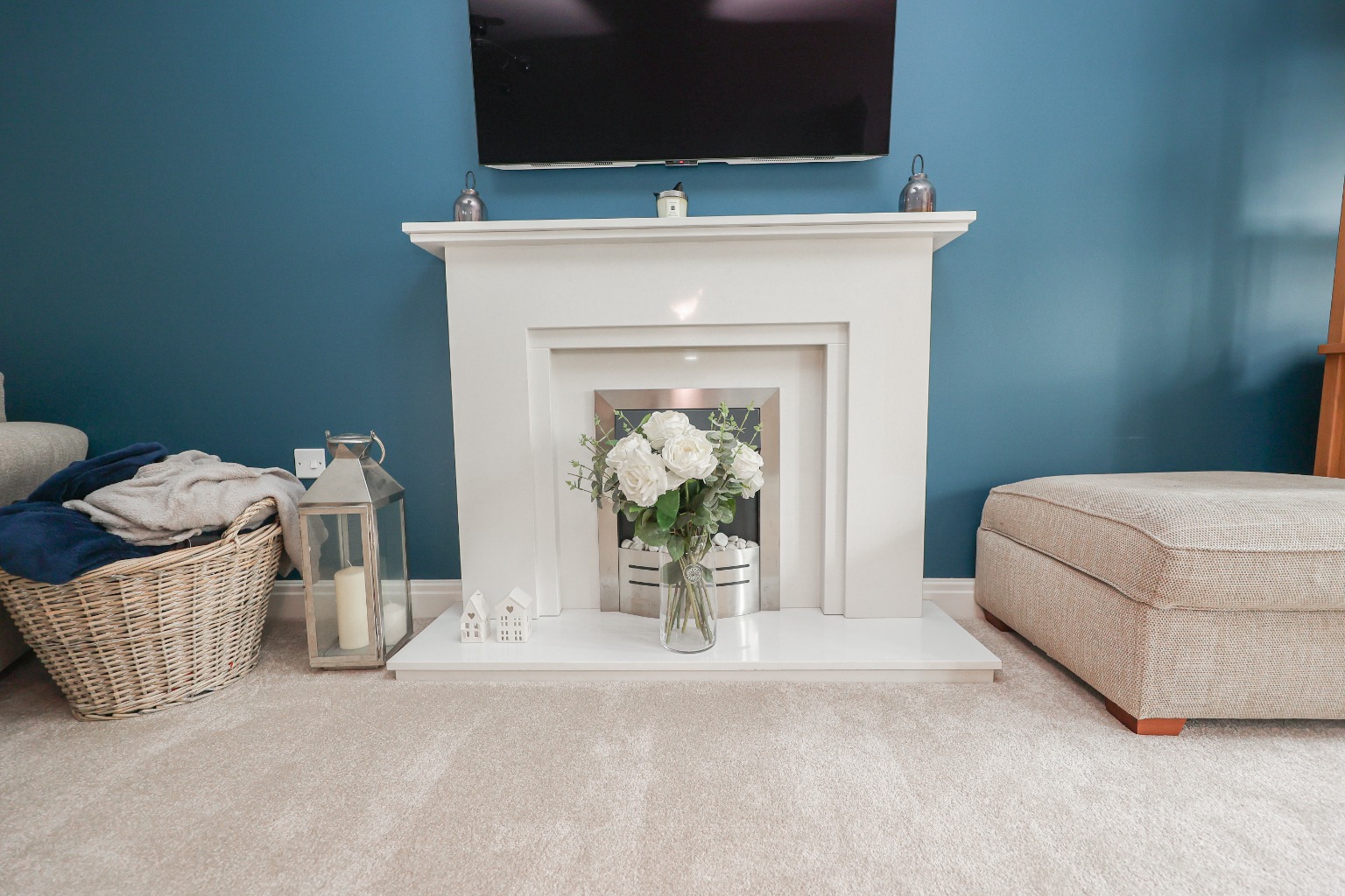 Step through the front door into a welcoming entrance hall, with fitted carpet, wall-mounted radiator, and stairs rising to the first floor. From here, access leads directly into the main living spaces. The Lounge (5.66m x 3.70m / 18'7" x 12'2") is a generously sized reception room with dual-aspect windows to the front, a feature fireplace with inset fire, and French doors opening into the kitchen diner. Two radiators provide warmth, while the media wall with integrated TV point and wiring keeps the space practical and modern. The heart of the home, the Kitchen Diner (4.84m x 3.40m / 15'11" x 11'2"), is fitted with a stylish range of wall and base units finished with Silestone worktops. Integrated appliances include fridge, freezer, dishwasher, electric oven, and gas hob with extractor fan. There’s also a one-and-a-half bowl sink and drainer, tiled splashbacks, tiled flooring, spotlights, and ample space for a dining table. Windows to the rear overlook the garden, while doors lead to both the downstairs WC and utility. The Downstairs WC (1.05m x 1.90m / 3'5" x 6'3") is smartly finished with tiled flooring and splashbacks, hand basin, toilet, and heated towel rails . The Utility Room (1.63m x 1.53m / 5'4" x 5'0") offers further practicality with plumbing for a washing machine, space for a tumble dryer, housing for the gas central heating boiler, radiator, and a door leading directly to the rear garden.