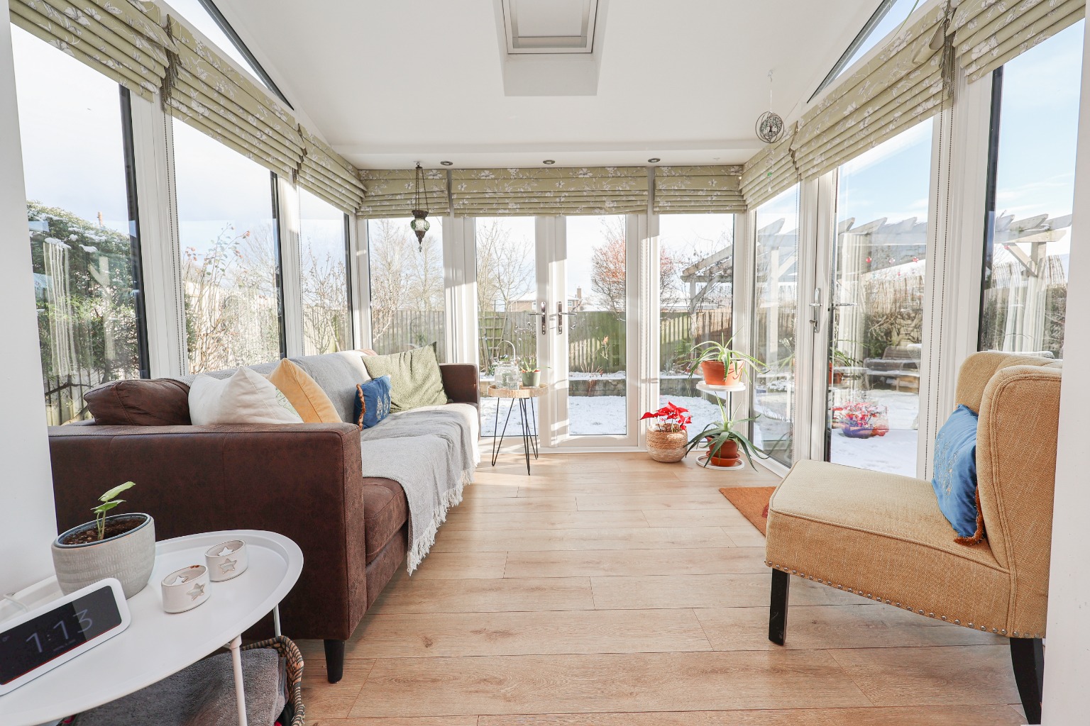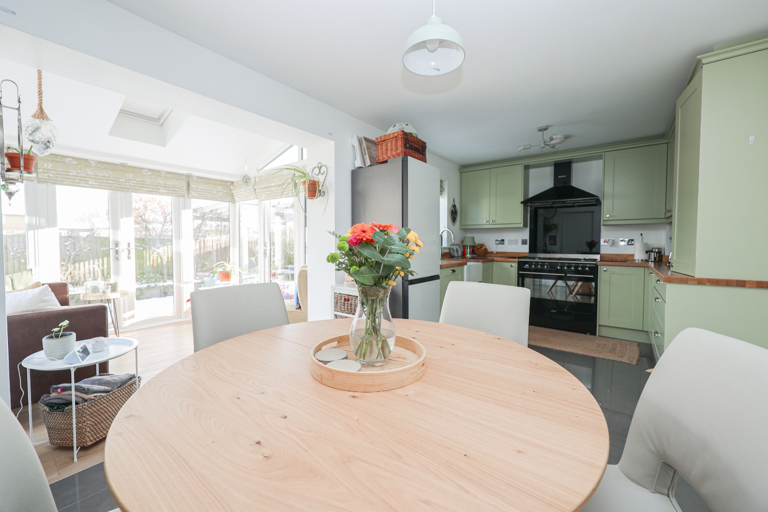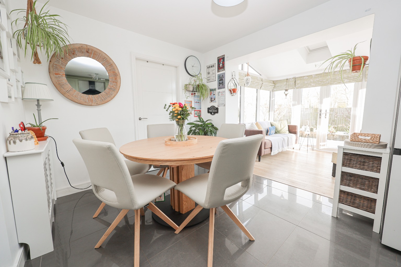 The property opens into a welcoming entrance hall, setting the tone for the light and contemporary accommodation throughout. To the front sits the spacious lounge (4.67m x 4.32m) — a bright and comfortable reception room ideal for family relaxation. Large windows allow plenty of natural light to fill the space.To the rear, the property flows into the impressive kitchen diner (2.95m x 5.69m), which underwent a full refit in 2022 by Sharp Cabinets. High-quality cabinetry, modern worktops and integrated appliances combine with generous dining space to create the true heart of the home. French doors open onto the garden room, making this an ideal entertaining area. In 2021, the sellers extended the property to create a superb garden room, professionally constructed by James Oliver. This additional living space connects seamlessly to the kitchen diner and offers a calming spot to enjoy the garden outlook all year round. A utility room (1.78m x 1.78m) with further storage, plumbing and worktops, along with a downstairs WC, completes the ground floor.