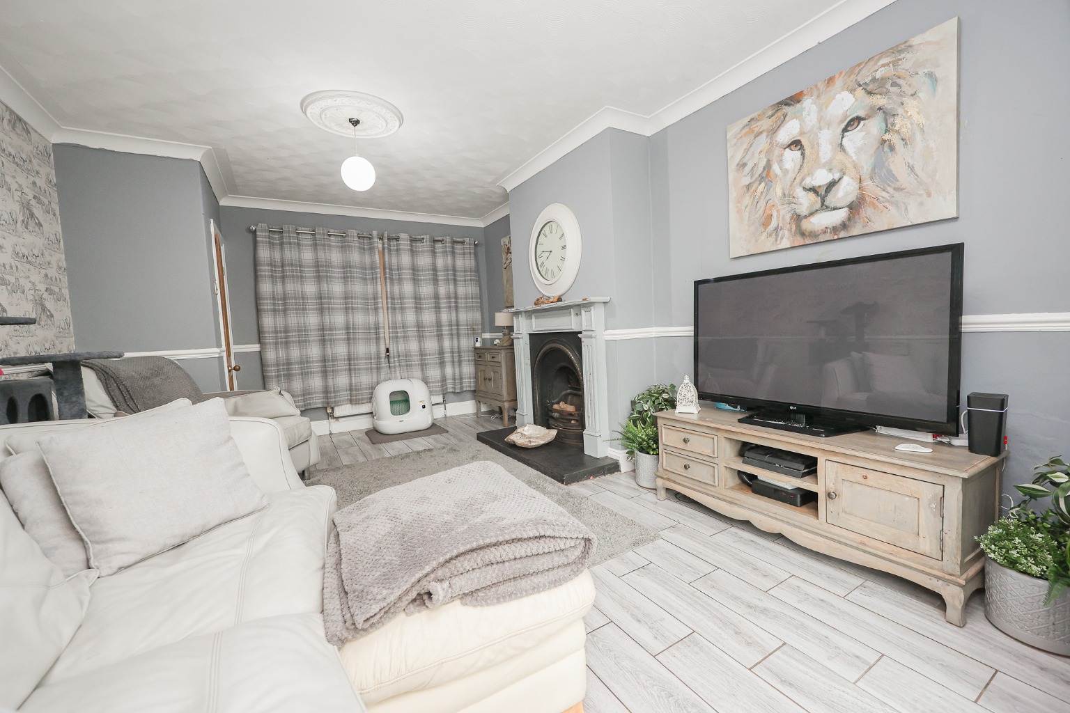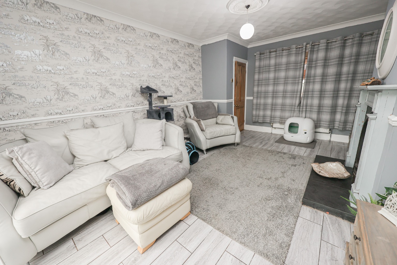 Step onto Station Road and you're greeted by a gravelled frontage that provides ample off-street parking for multiple vehicles. A tall, neatly trimmed hedge offers privacy to the front, while a gated side drive continues through to the rear garden — ideal for families, pets, or guests coming and going with ease. Step inside through the covered porch and into the Entrance Hallway — a welcoming space that sets the tone for the rest of the home. With staircase rising to the first floor, it's both practical and characterful, offering a glimpse of the stylish décor that continues throughout.