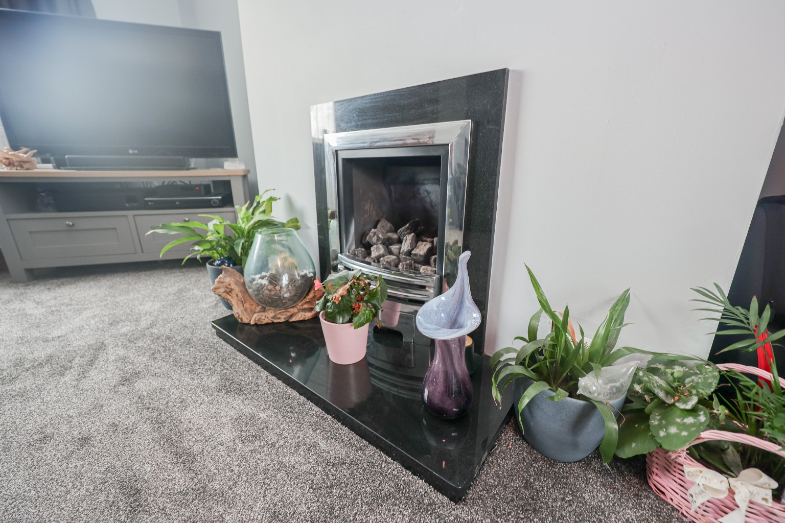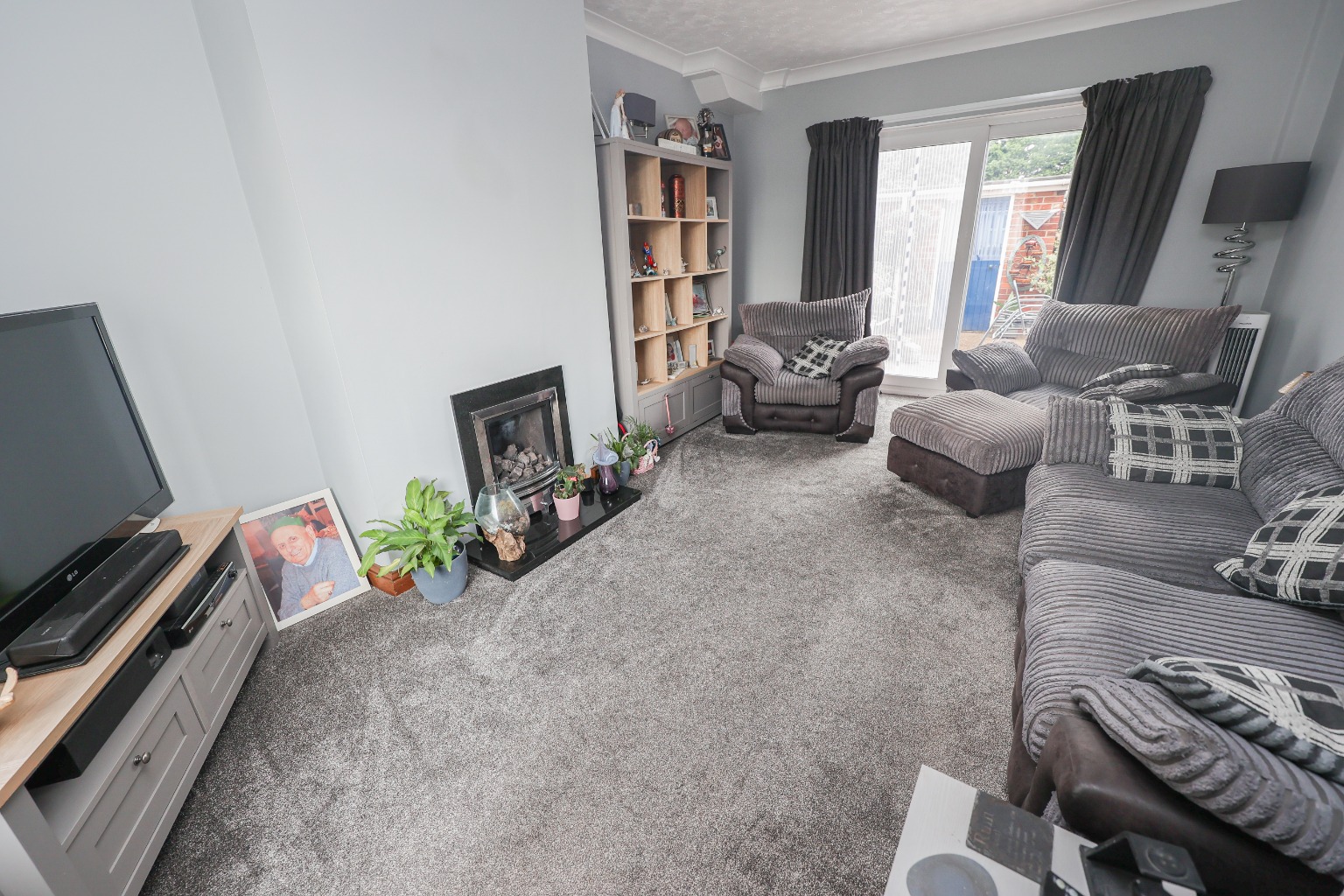 With fitted carpet, wall mounted panel radiator, fireplace, and sliding doors to the rear aspect.