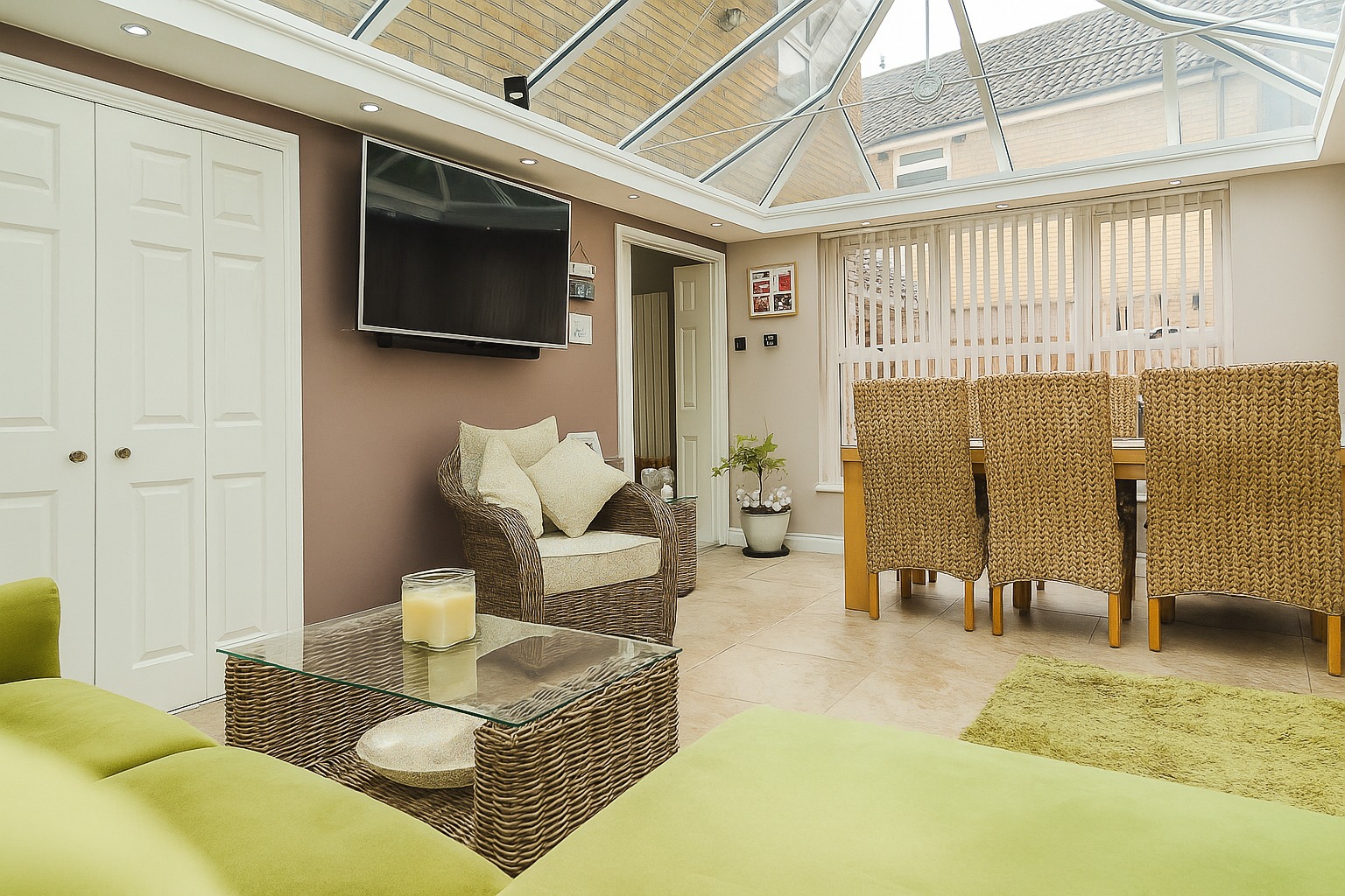 This stunning and bright orangery includes tiled flooring, two wall mounted panel radiators, two sets of wall mounted panel radiators, windows to the rear aspect and french doors to the rear aspect.