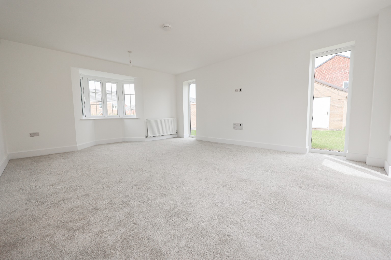 A spacious living room ideal for relaxing or entertaining, with a Cat 5 socket and TV aerial point for modern media needs.