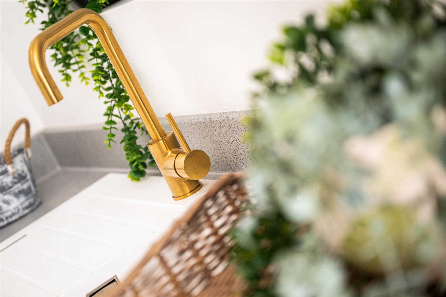 - Gold/brass monobloc U-shape kitchen tap