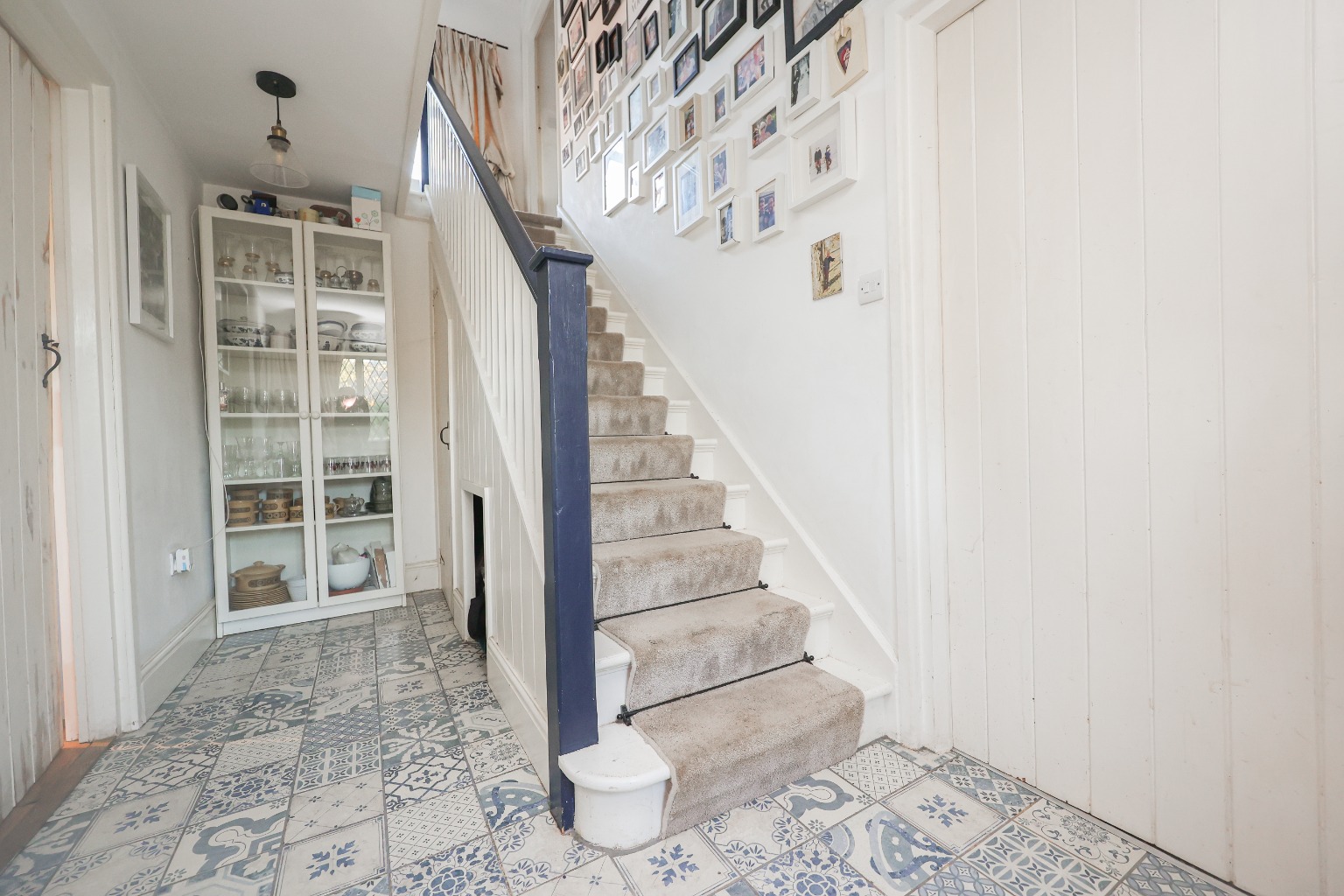 Approached along a long, private driveway and screened beautifully from the lane, Barn Cottage immediately sets a tone of calm and seclusion. Stepping through the front door, the entrance hall welcomes you with tiled flooring underfoot, exposed character features and the gentle charm that runs throughout the entire home. The stairs rise ahead to the first floor, while an understairs cupboard provides practical storage.