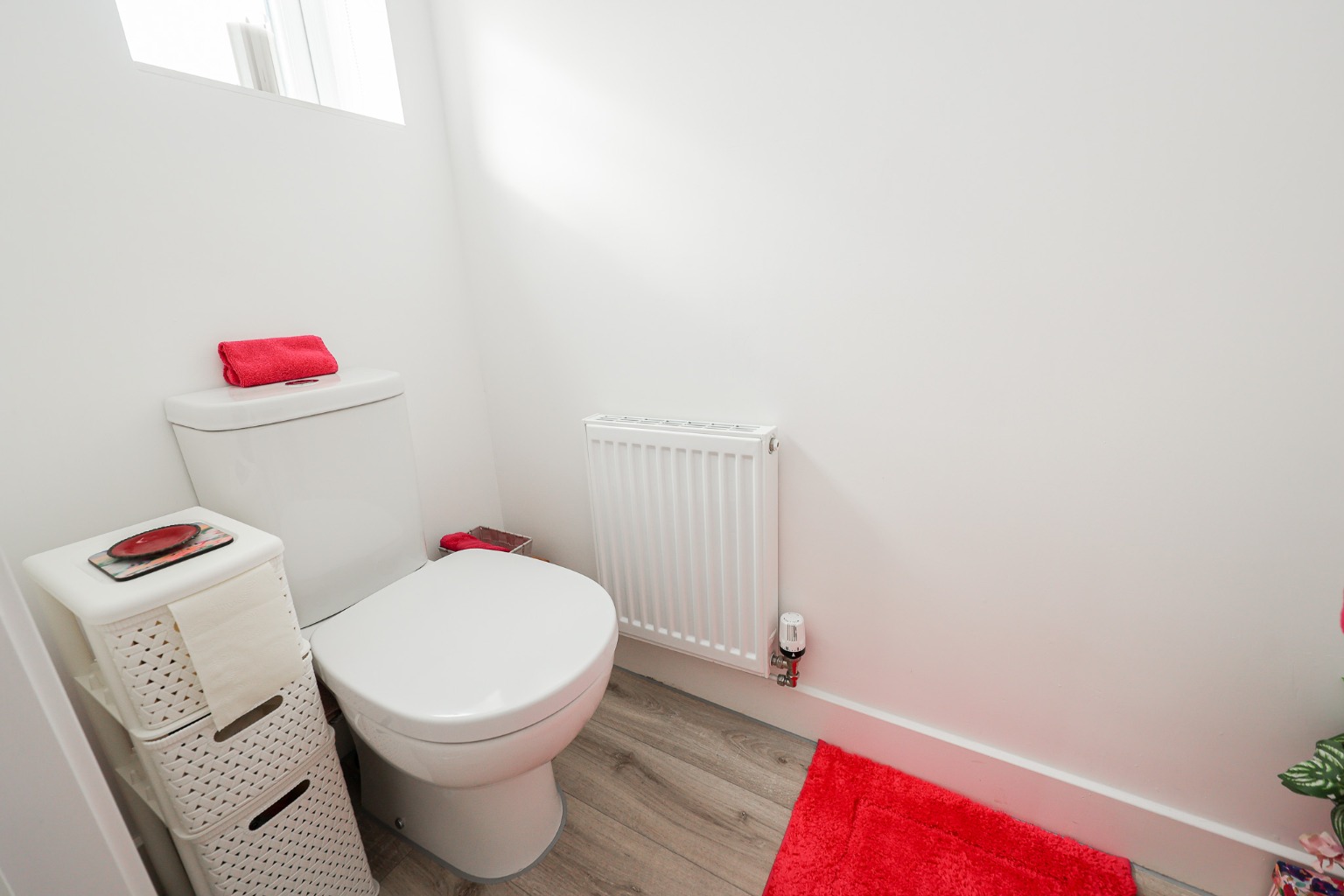 With low level flush wc, wash hand basin, wall mounted panel radiator and window to the front aspect.