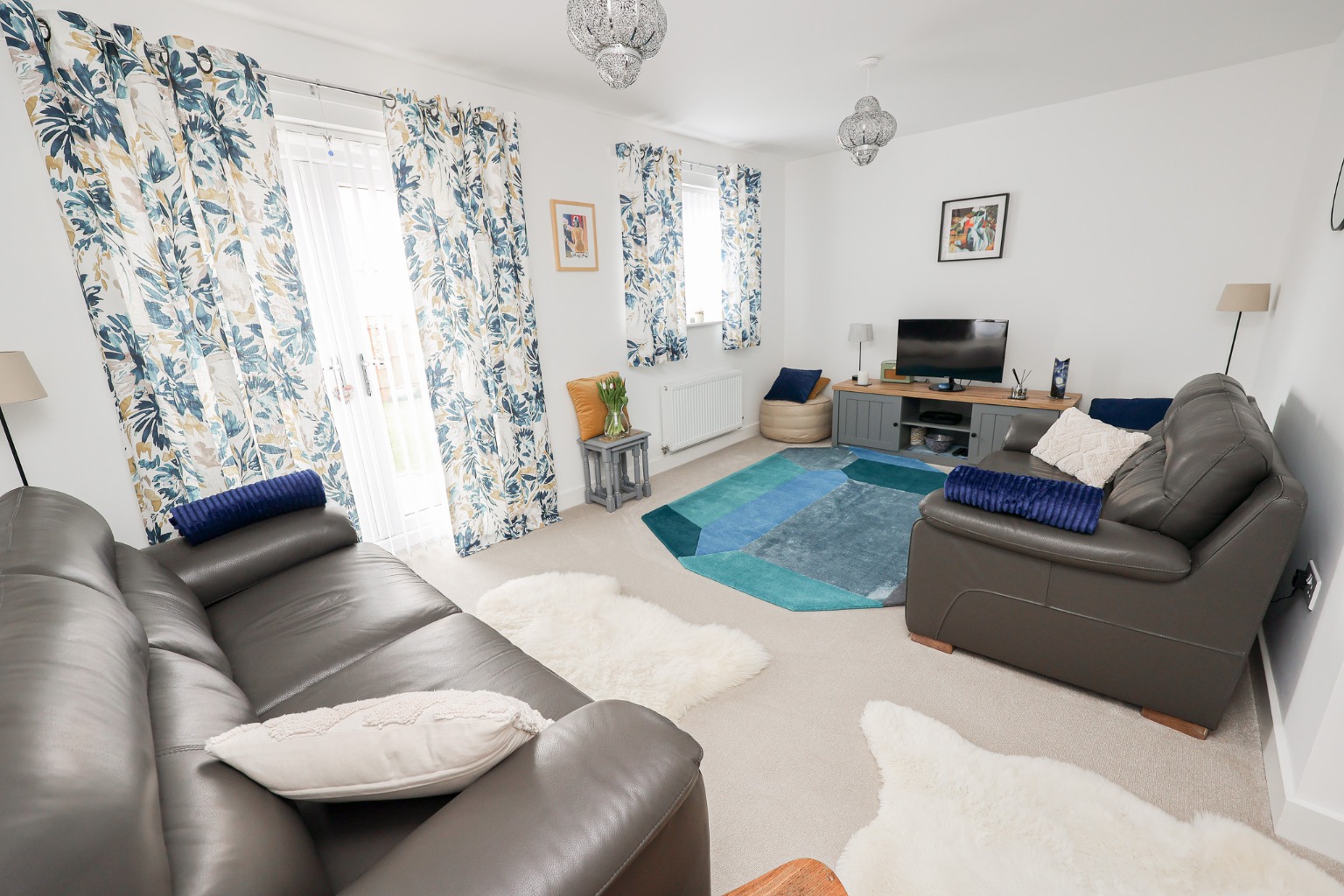 With fitted carpet, skirting, understairs storage cupboard, television point, telephone point, window to the rear aspect, and french doors to the rear aspect.